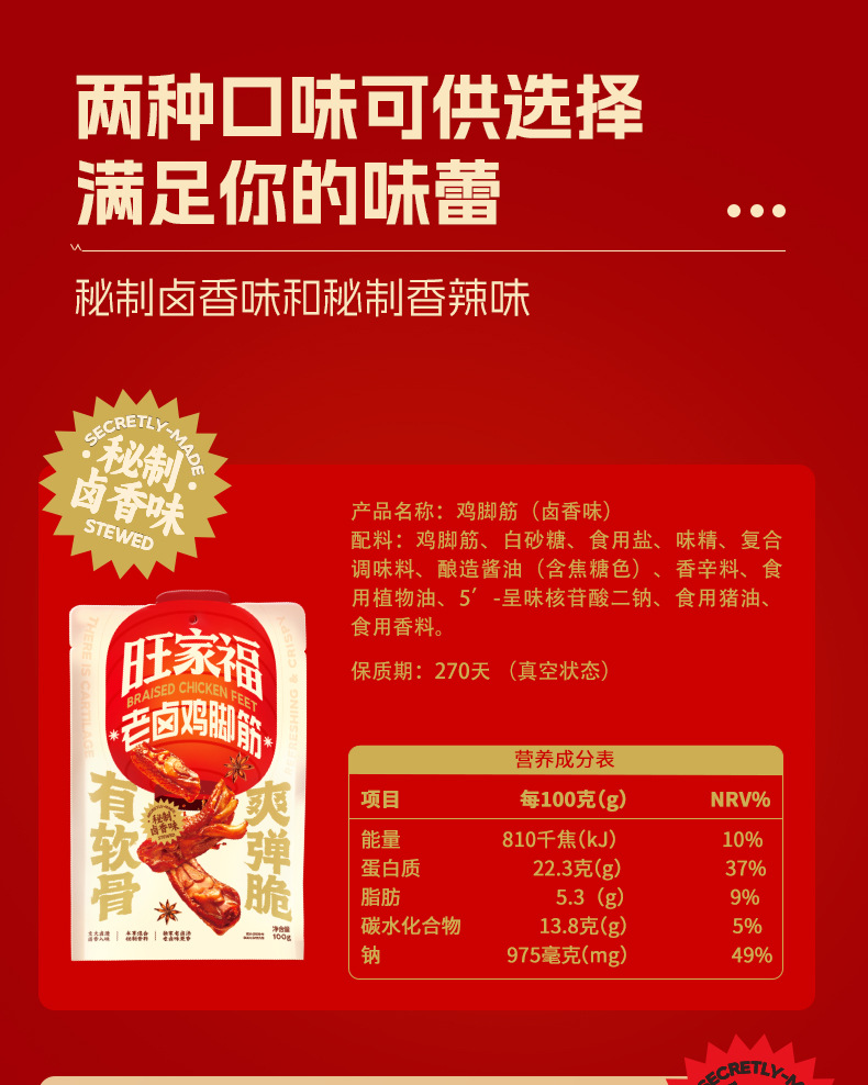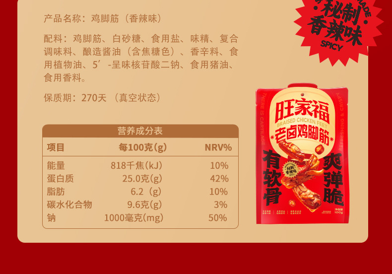 Wangjiafu 닭발 스낵, 술과 함께 먹는 스낵, 야식, 배고픔을 달래주는 인터넷 연예인 매운 스낵, 봉지에서 바로 먹을 수 있는 스낵스토어 가기