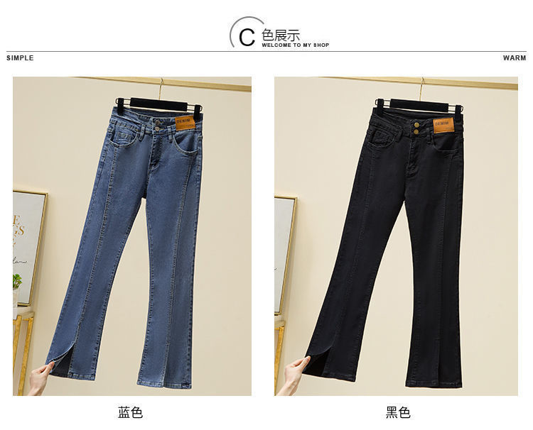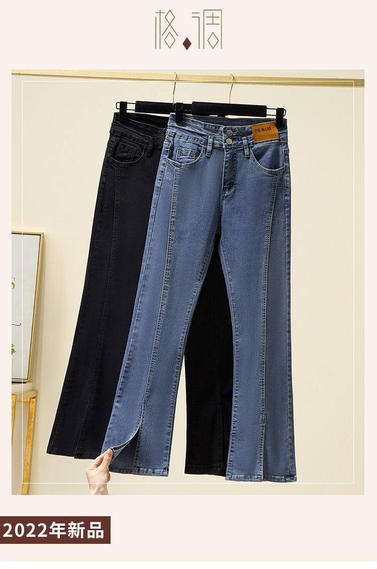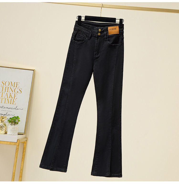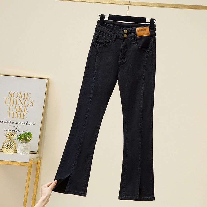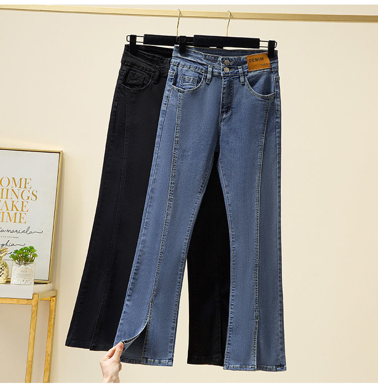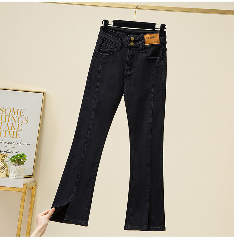 뚱뚱한 검은 쪼개진 쇠고기 바지 여성 여름 2025 새로운 높은 허리 슬림 분할 마이크로 혼 바지스토어 가기