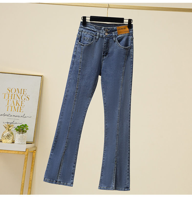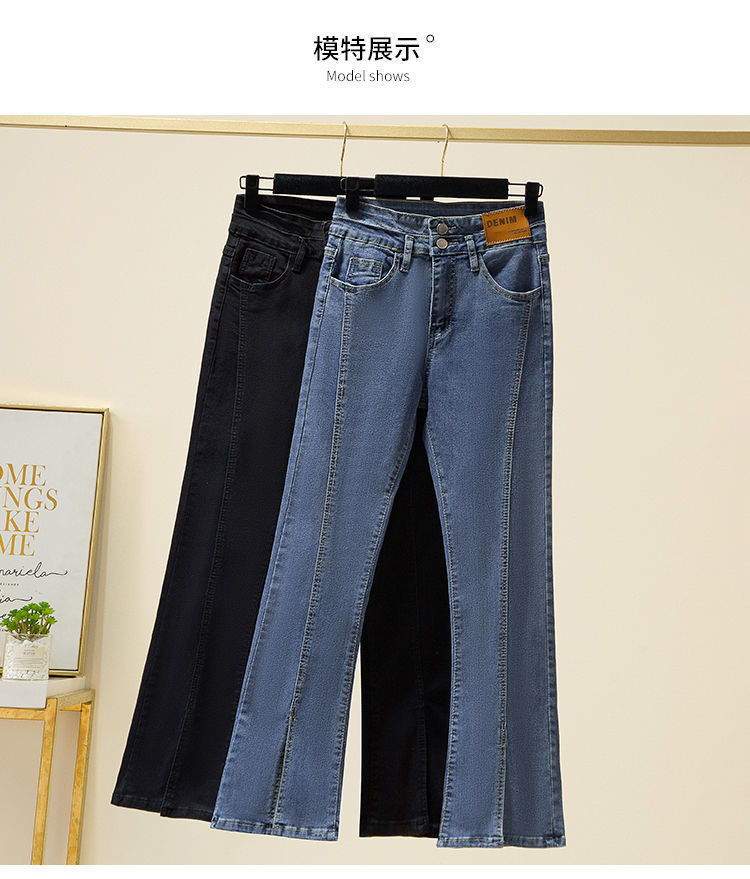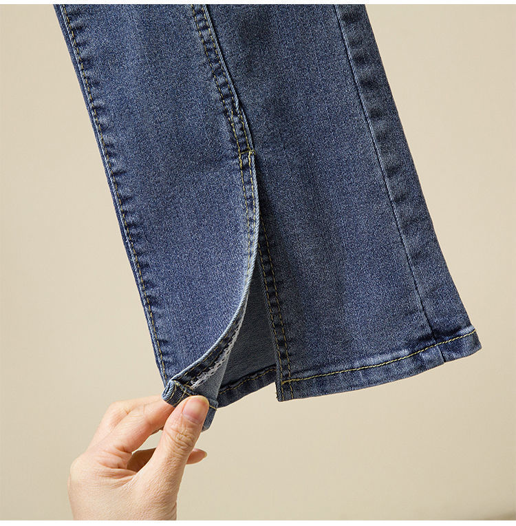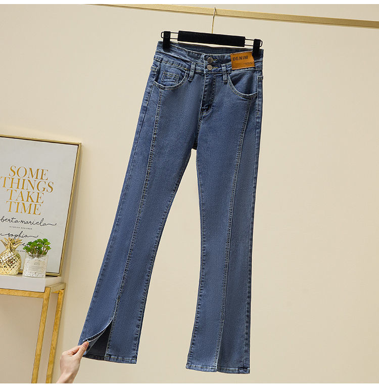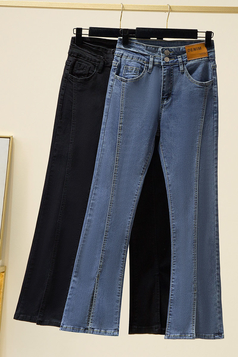 뚱뚱한 검은 쪼개진 쇠고기 바지 여성 여름 2025 새로운 높은 허리 슬림 분할 마이크로 혼 바지스토어 가기
