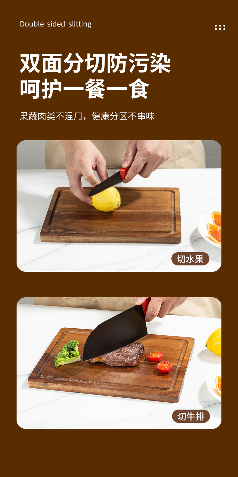 새로운 주방 그루브 커팅 보드 아카시아 단단한 나무 커팅 보드 주방 가정용 커팅 보드 주방 도구 과일 커팅 보드