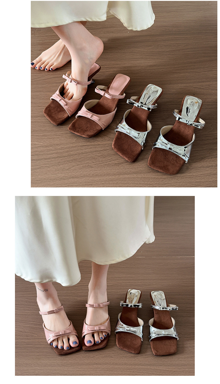 2025 년 여름 새로운 프랑스 스타일 활 웨지 샌들 여성 한국식 아웃웨어 스퀘어 발가락 여성용 미드 힐 슈즈 트렌디