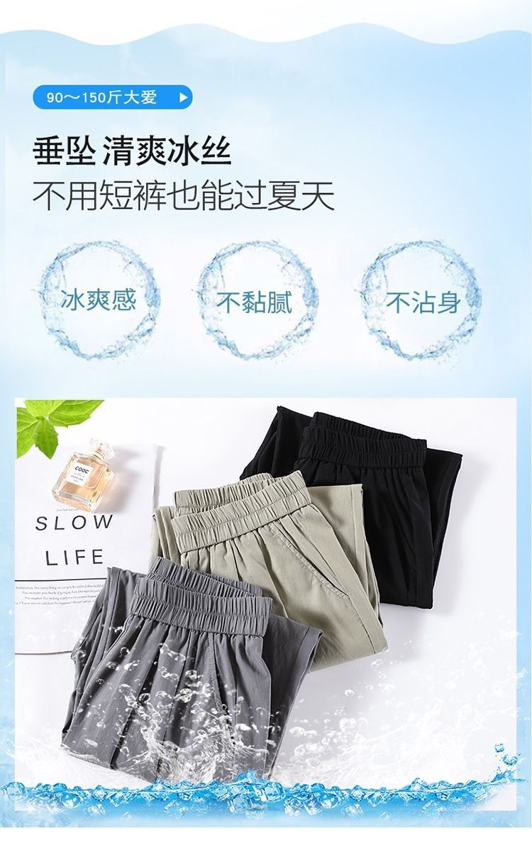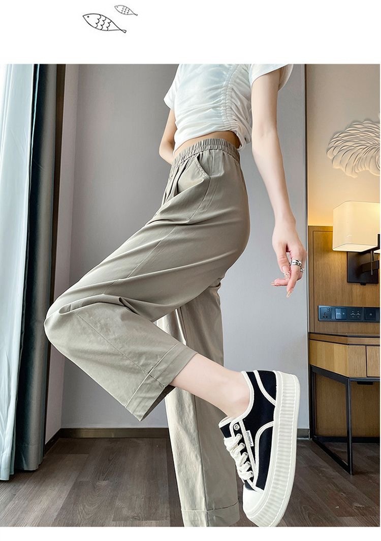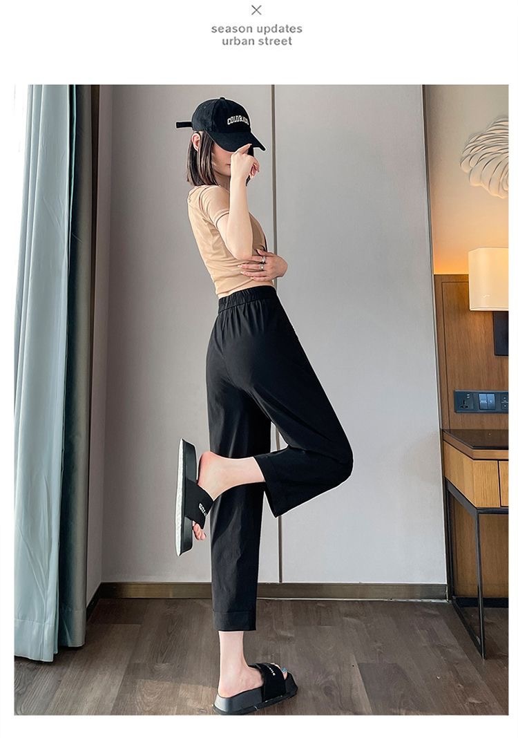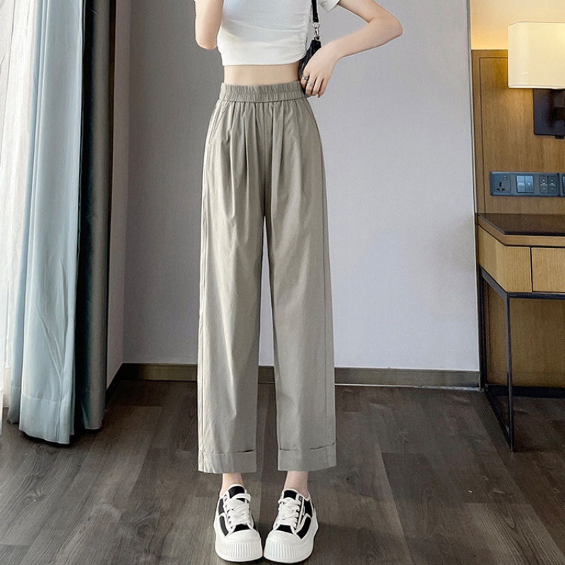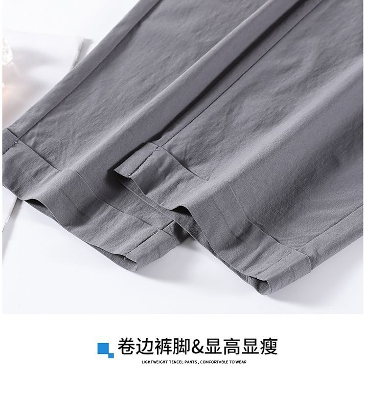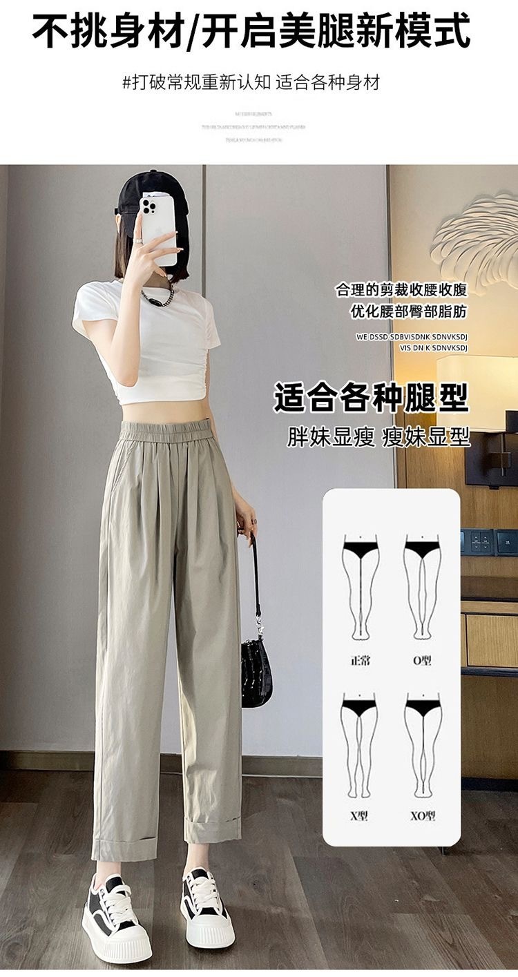 여름 높은 허리 아이스 실크 캐주얼 바지 여성용 느슨한 스트레이트 튜브 슬리밍 빠른 건조 자른 넓은 다리 작업복 하렘 바지스토어 가기