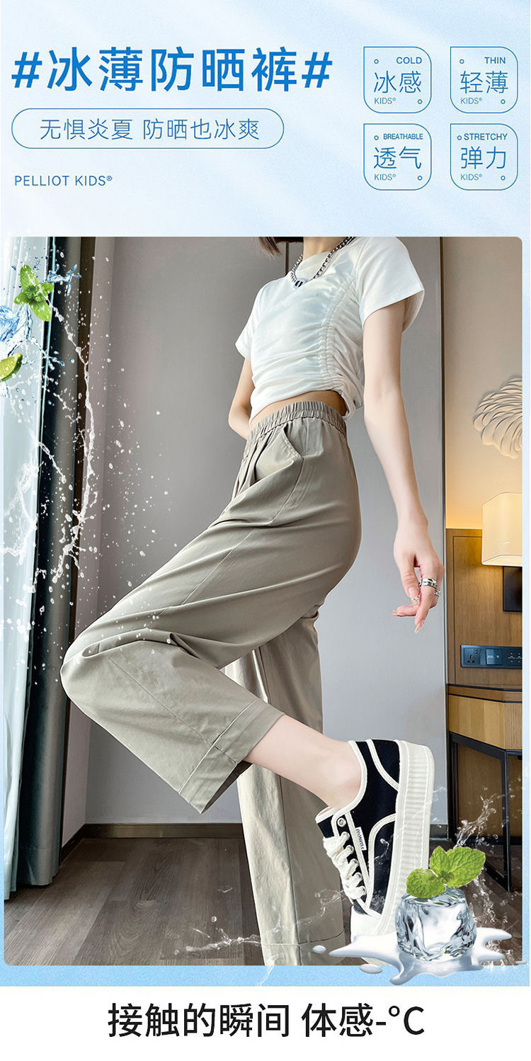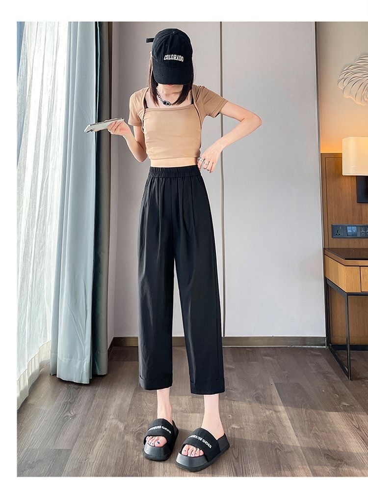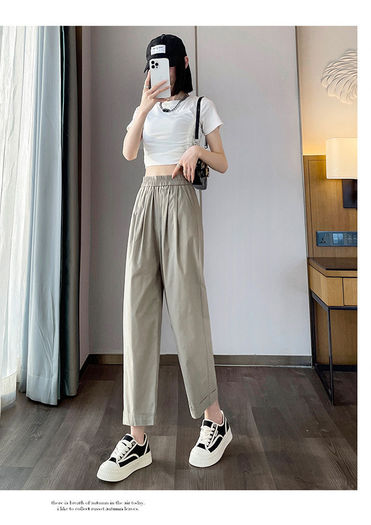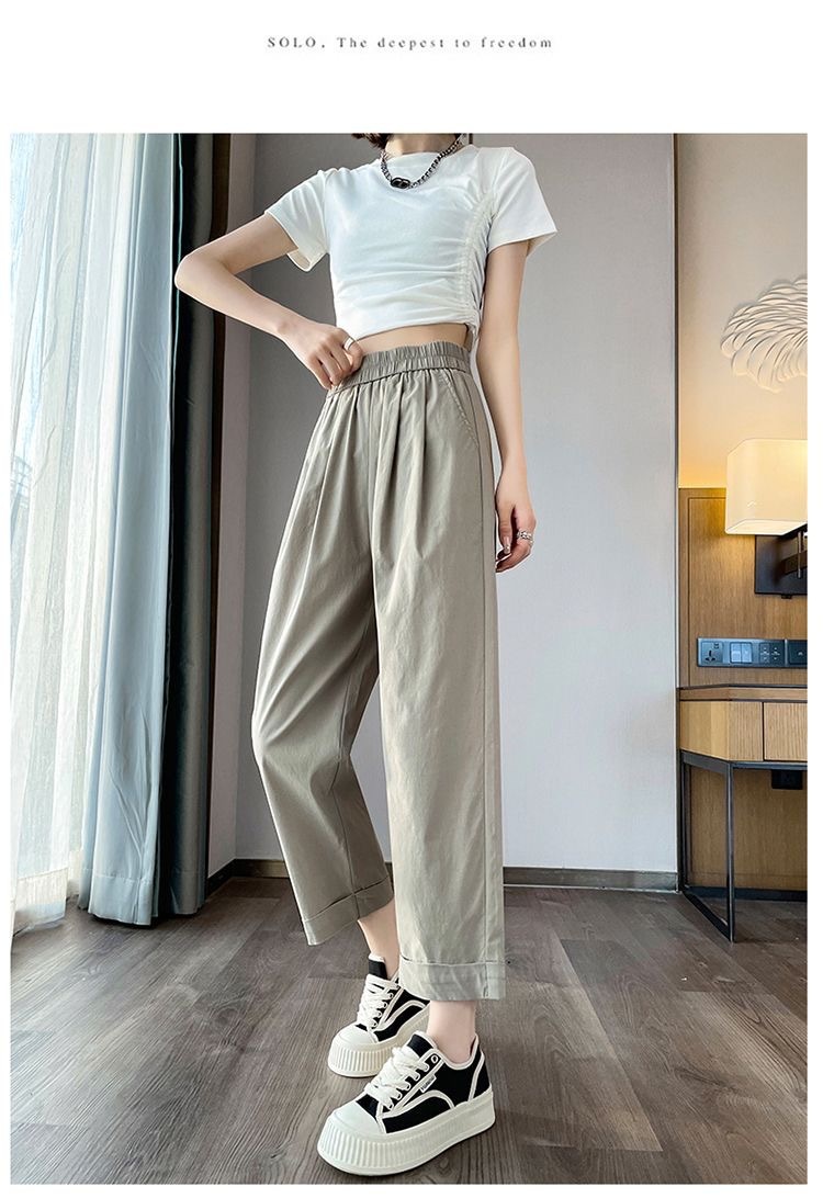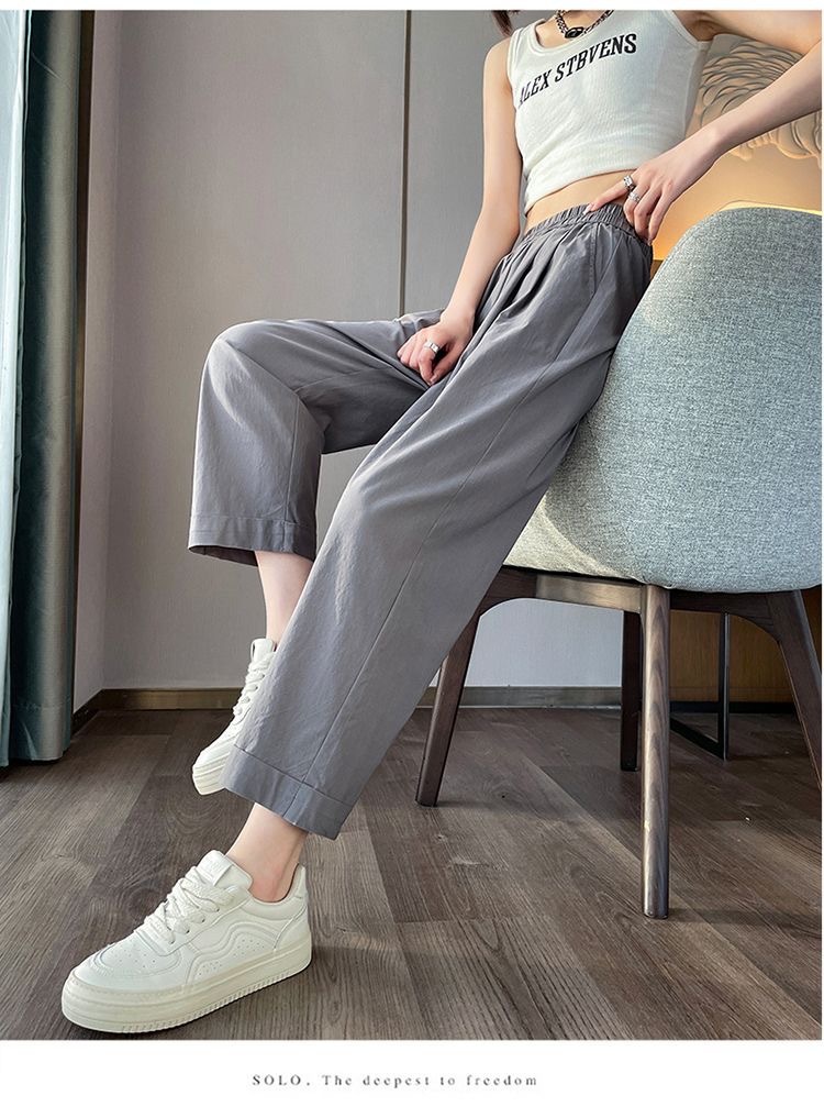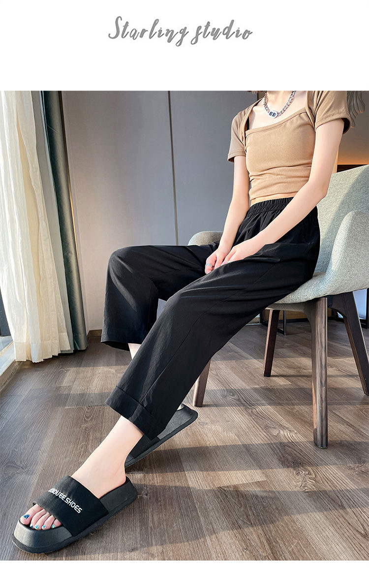 여름 높은 허리 아이스 실크 캐주얼 바지 여성용 느슨한 스트레이트 튜브 슬리밍 빠른 건조 자른 넓은 다리 작업복 하렘 바지스토어 가기