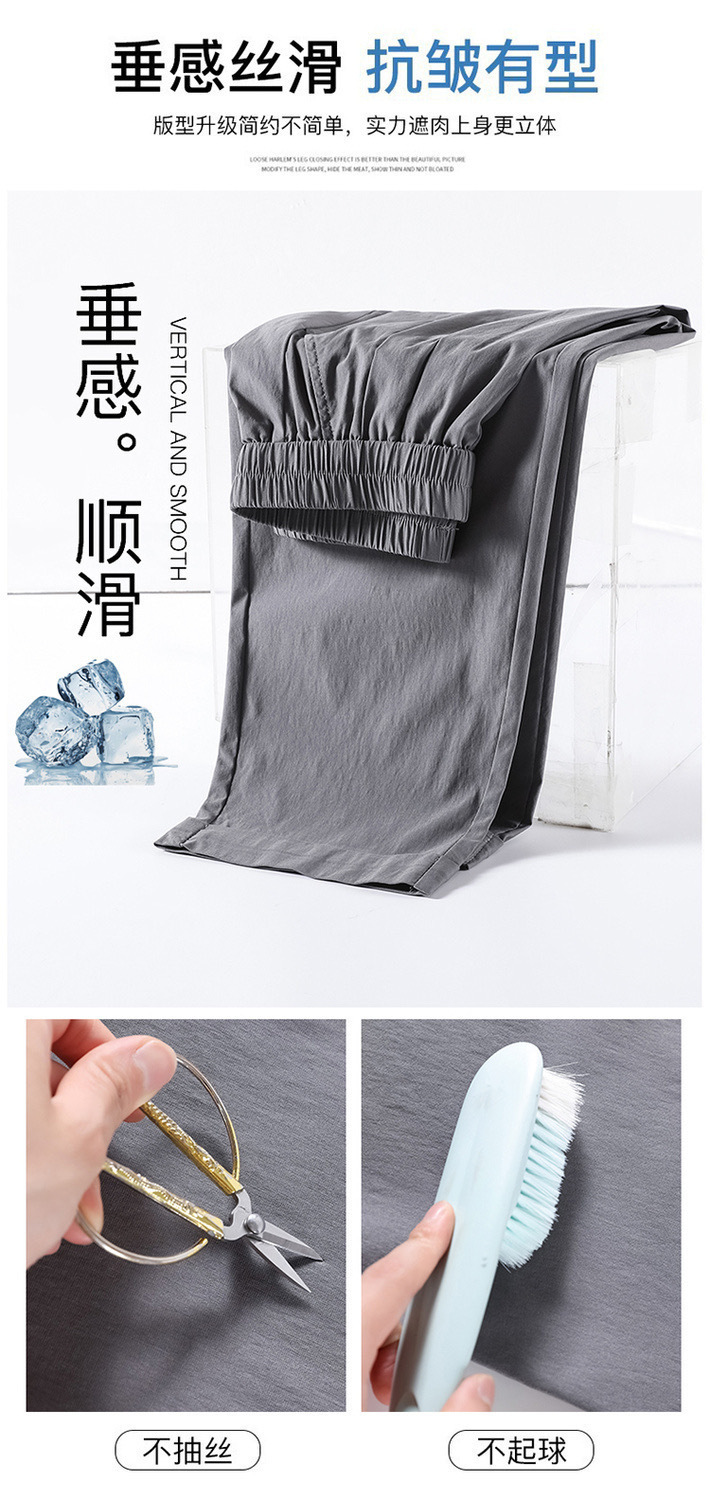 여름 높은 허리 아이스 실크 캐주얼 바지 여성용 느슨한 스트레이트 튜브 슬리밍 빠른 건조 자른 넓은 다리 작업복 하렘 바지