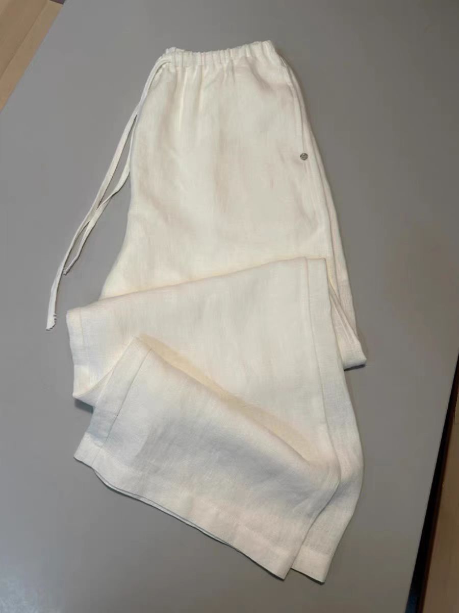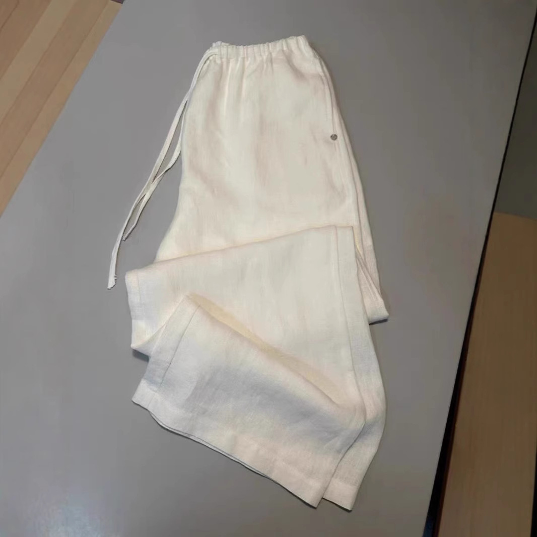 推荐!宝藏裤!好看舒适透气凉快亚麻白色长裤松紧腰抽绳阔腿裤