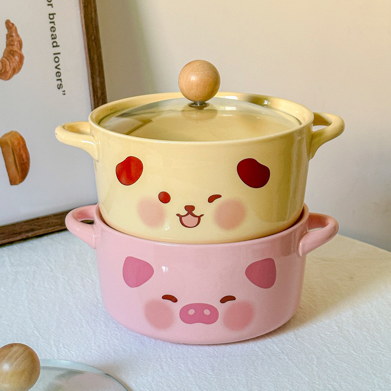 • 쌍귀국수그릇-핑크돼지(뚜껑포함)⚑