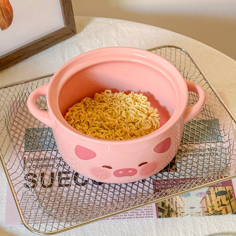 • 쌍귀국수그릇 - 핑크돼지 (뚜껑 없음)⚑