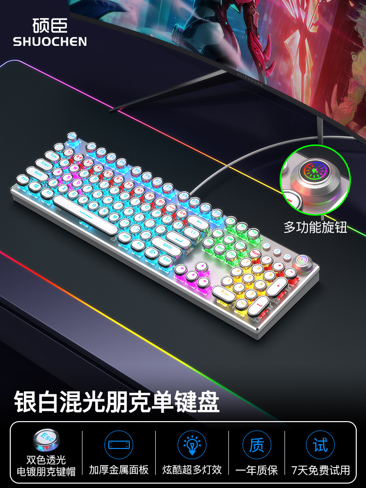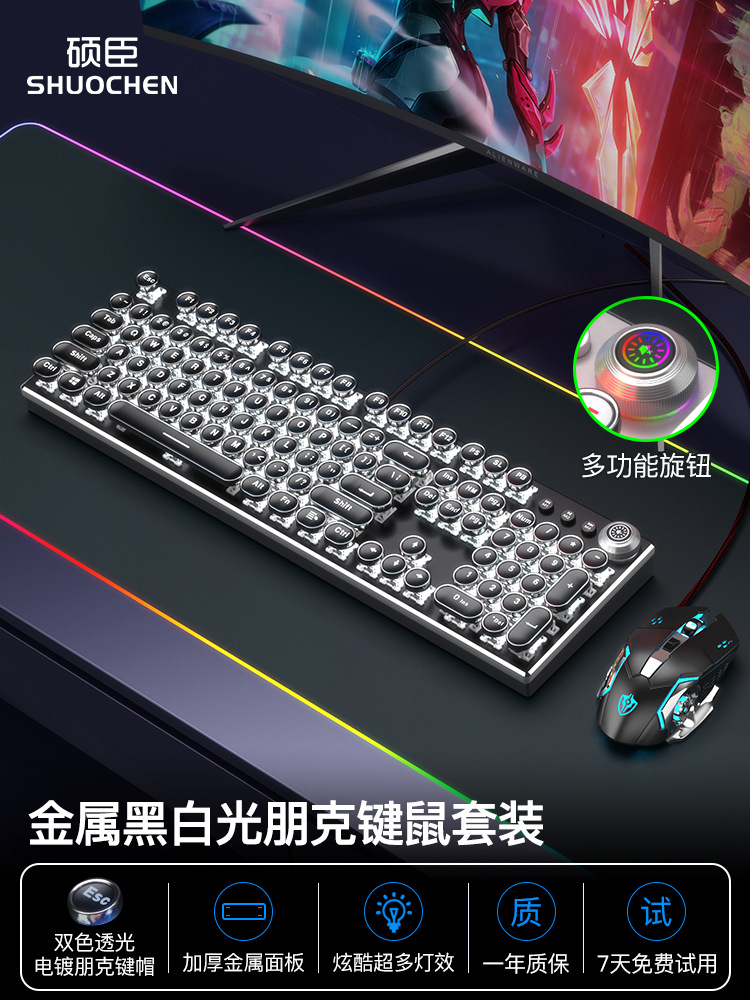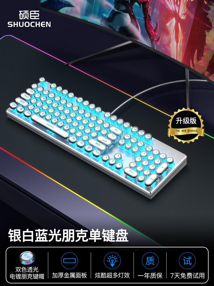 • 녹색 축 - 금속 은백색 조명 [업그레이드된 전기 도금 펑크 버전] + 게임 매크로 프로그래밍 마우스 - No - 104 키 - 공식 표준