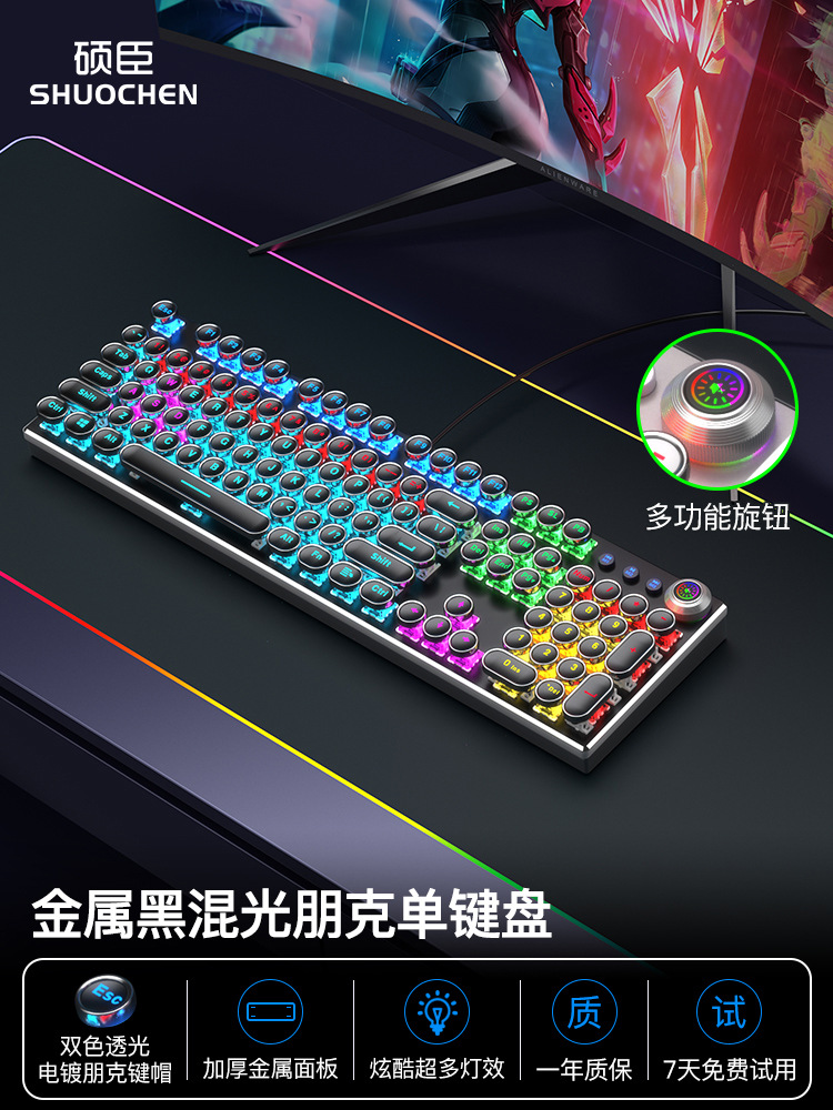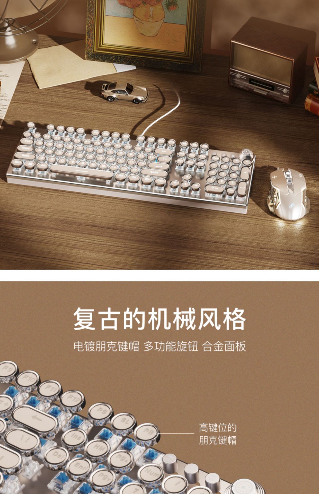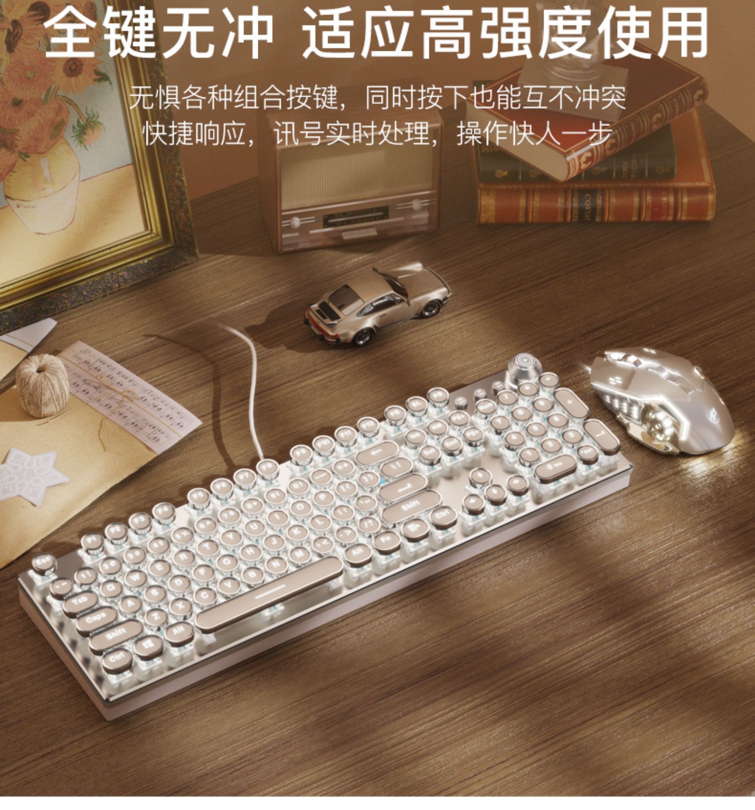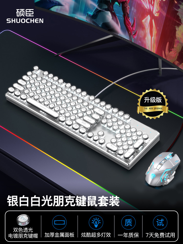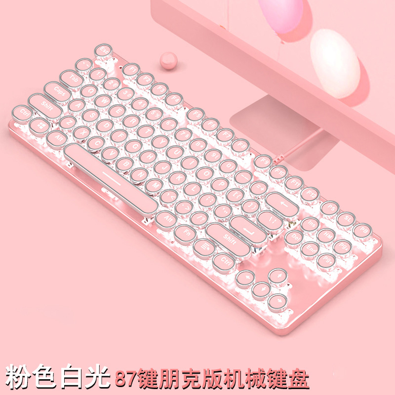 기계식 키보드 및 마우스 세트 녹색 축 펑크 레트로 유선 데스크톱 컴퓨터 게임 높은 색 가치 사무실 소녀스토어 가기