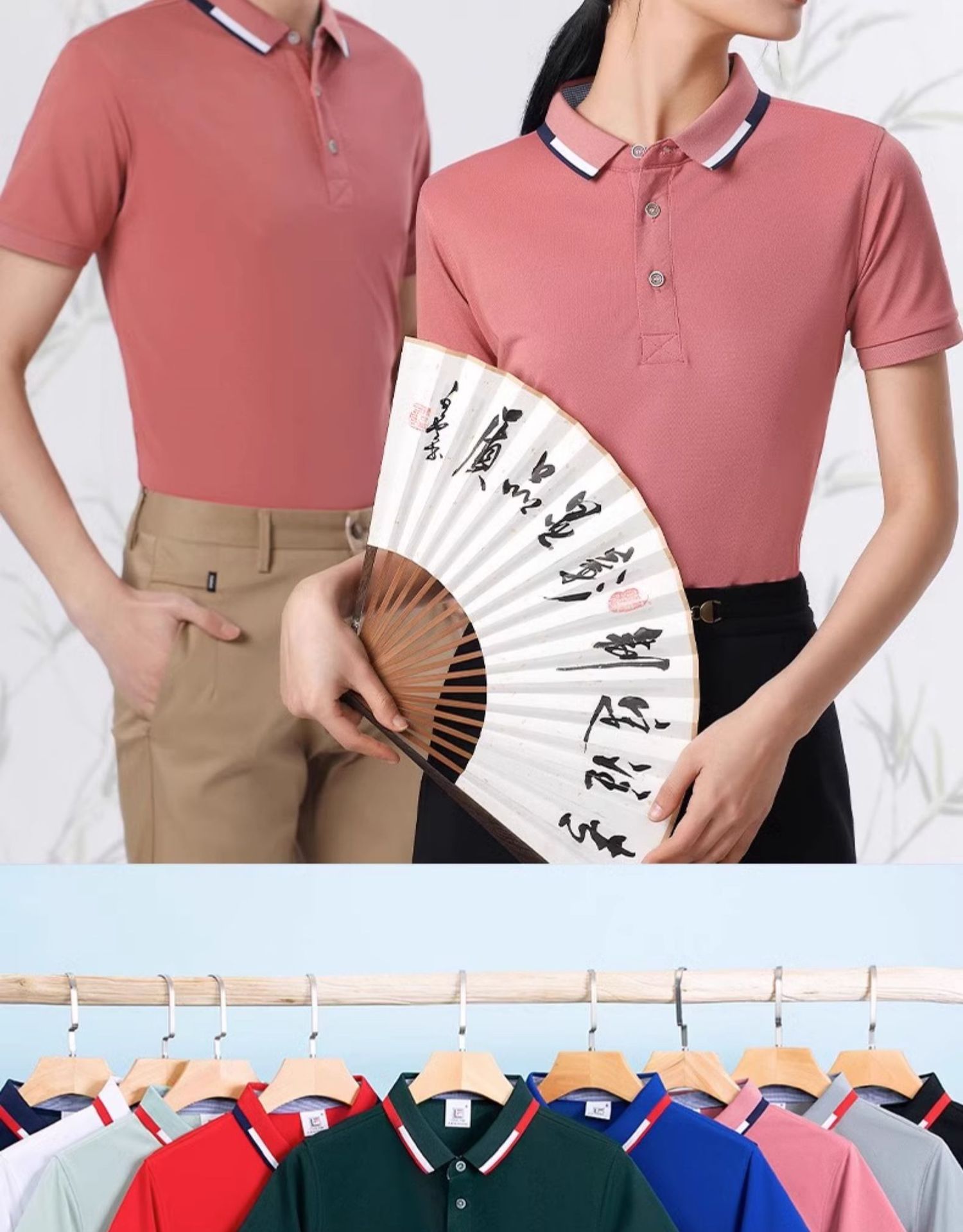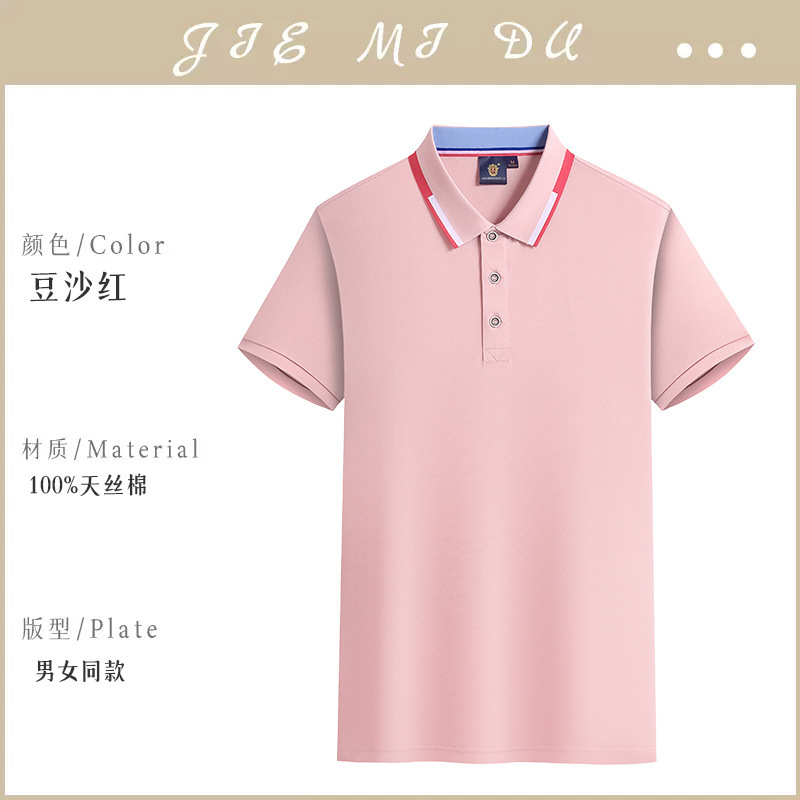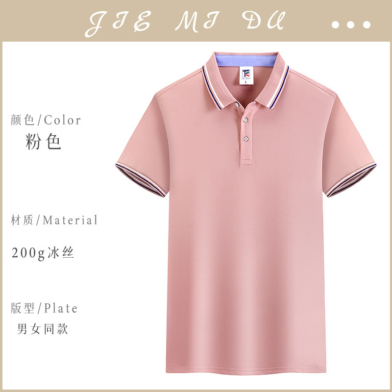 핑크 여름 아이스 실크 바지 티셔츠 맞춤형 반팔 남성 옷깃 도구 광고 문화 폴로 셔츠 맞춤스토어 가기