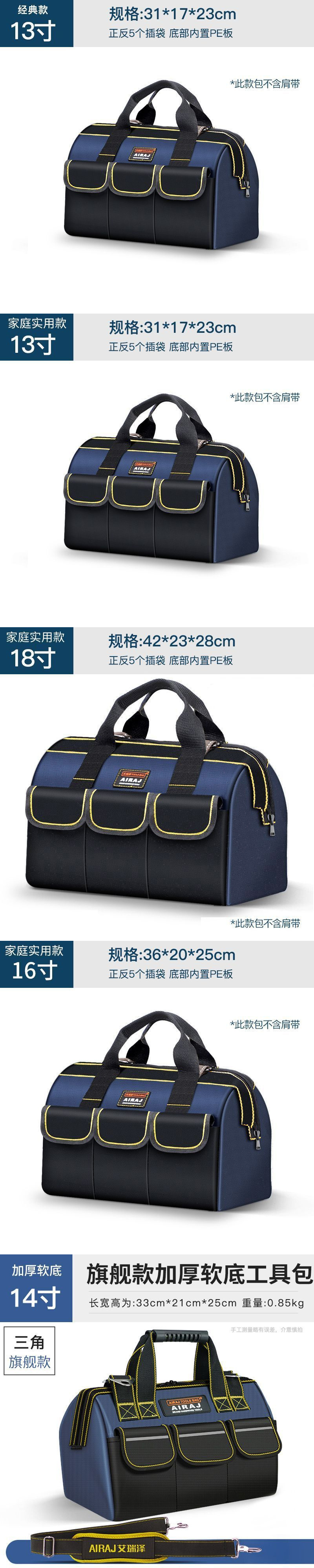 Arrizo 전기 툴킷 휴대용 다기능 설치 및 유지 보수 휴대용 캔버스 대형 두꺼운 작은 도구 가방