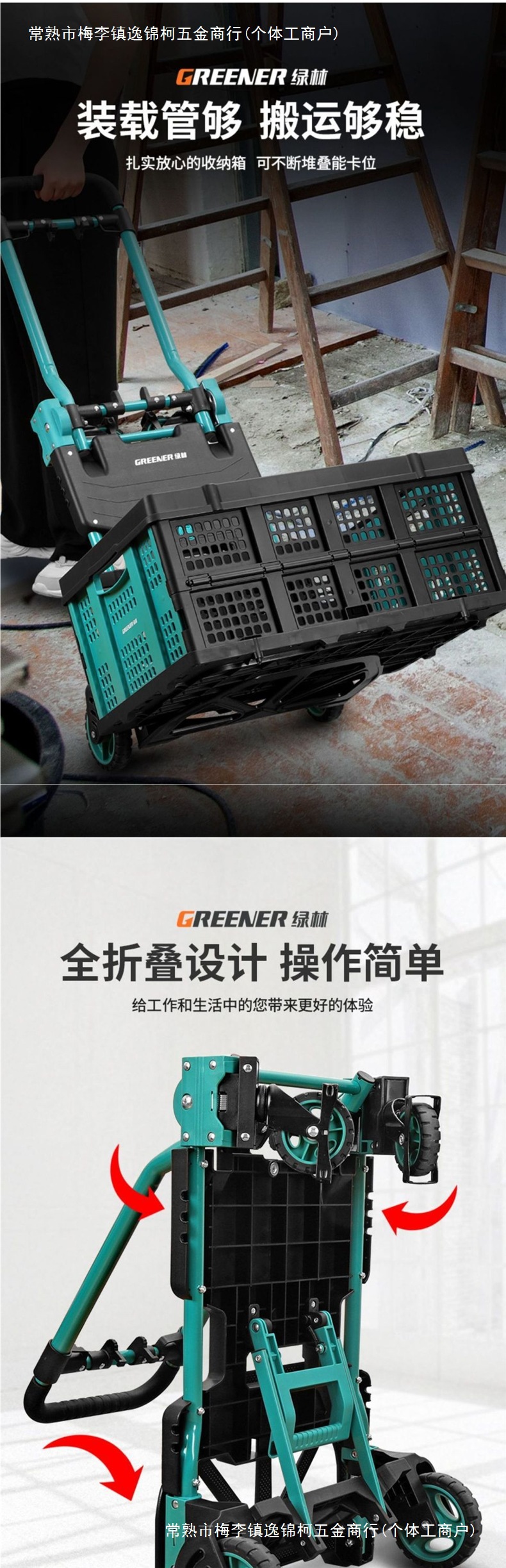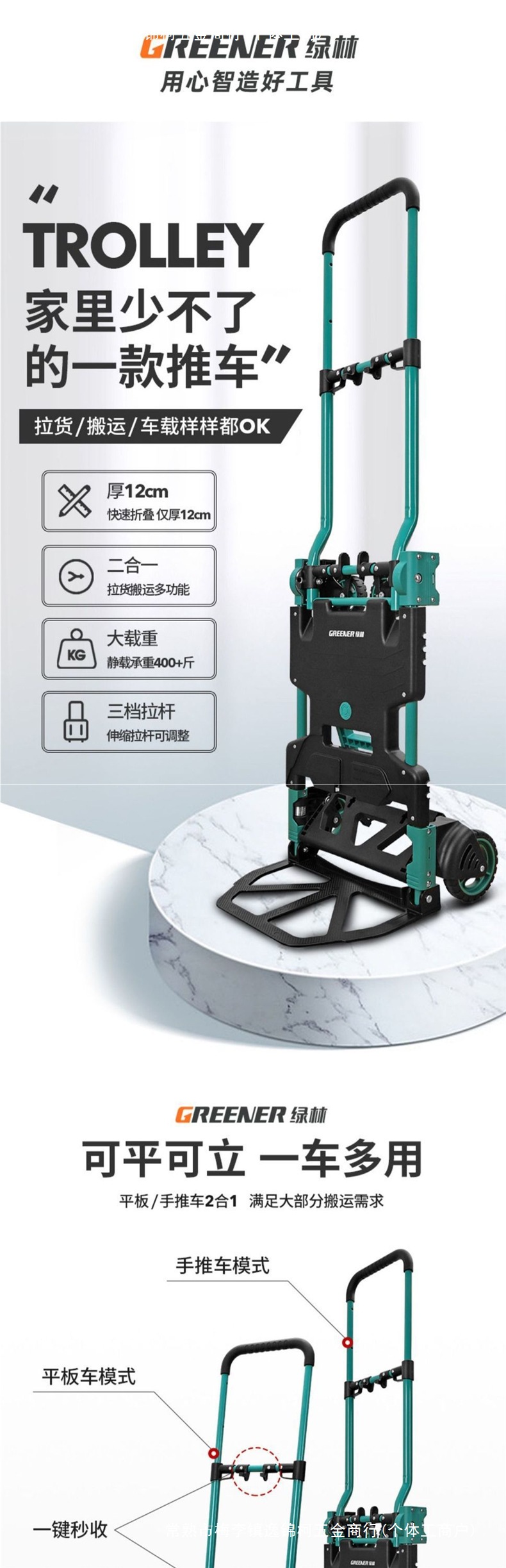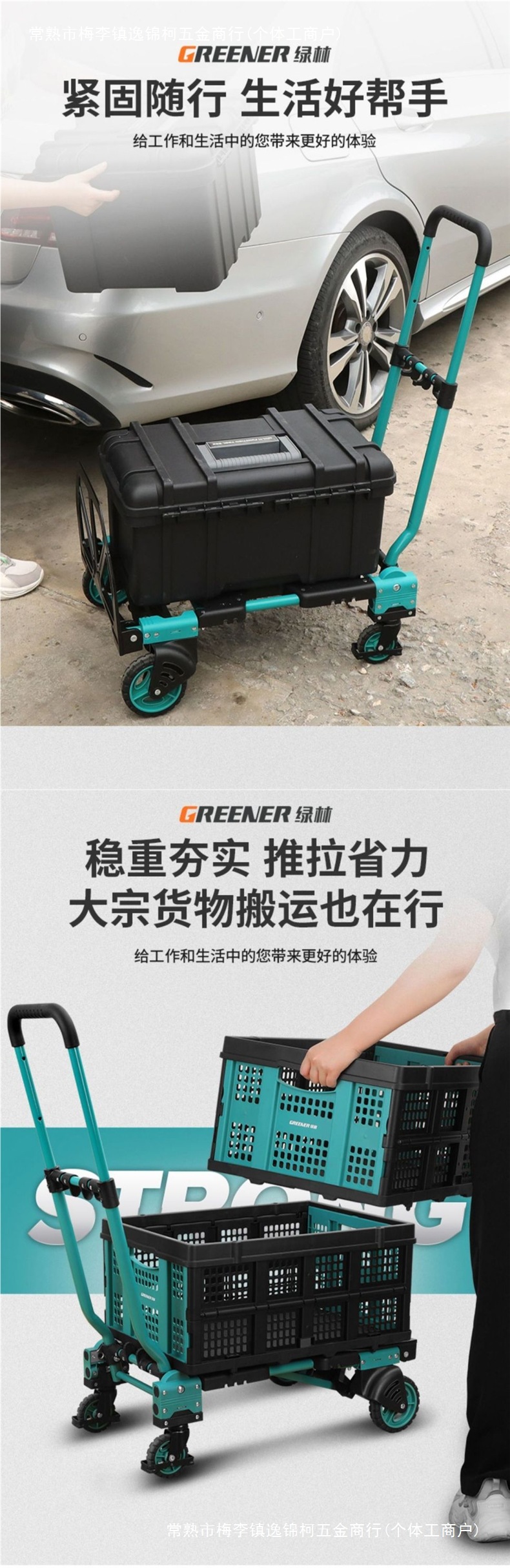녹색 숲화물 트롤리 접이식 처리 다기능 견인 익스프레스 플랫 트레일러 휴대용 회전율스토어 가기