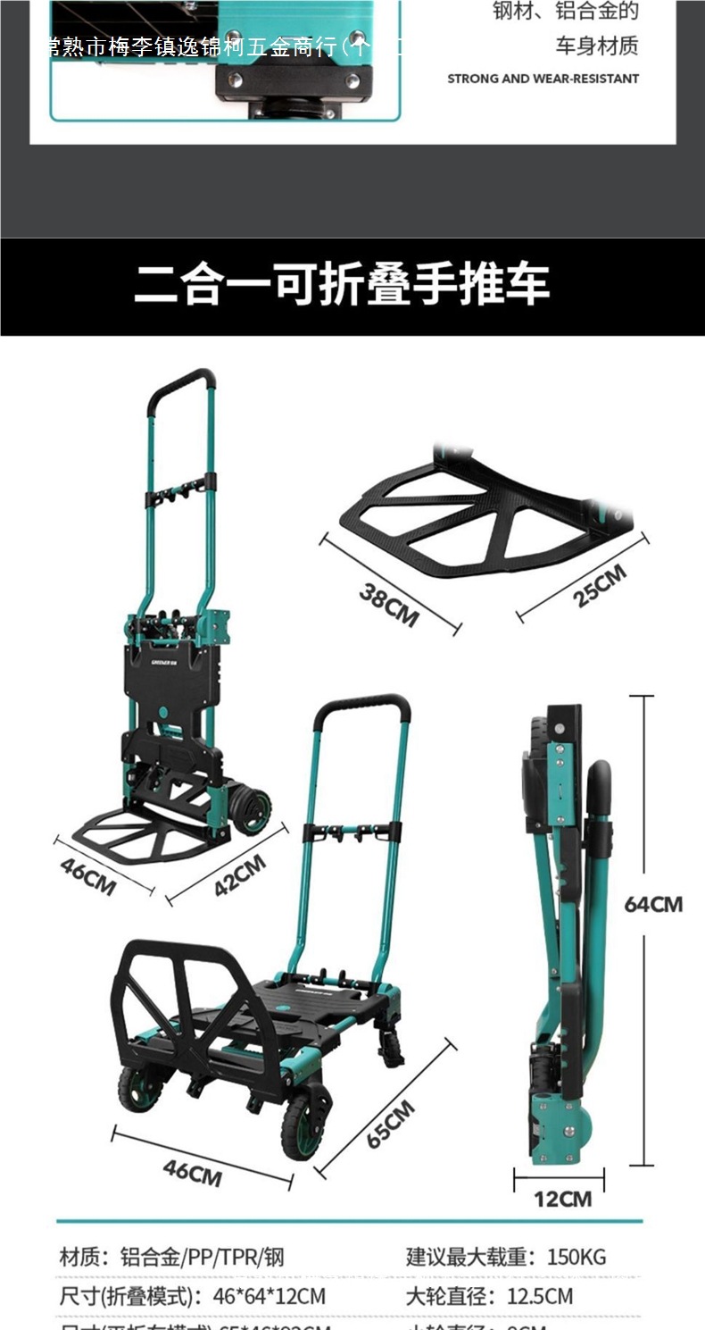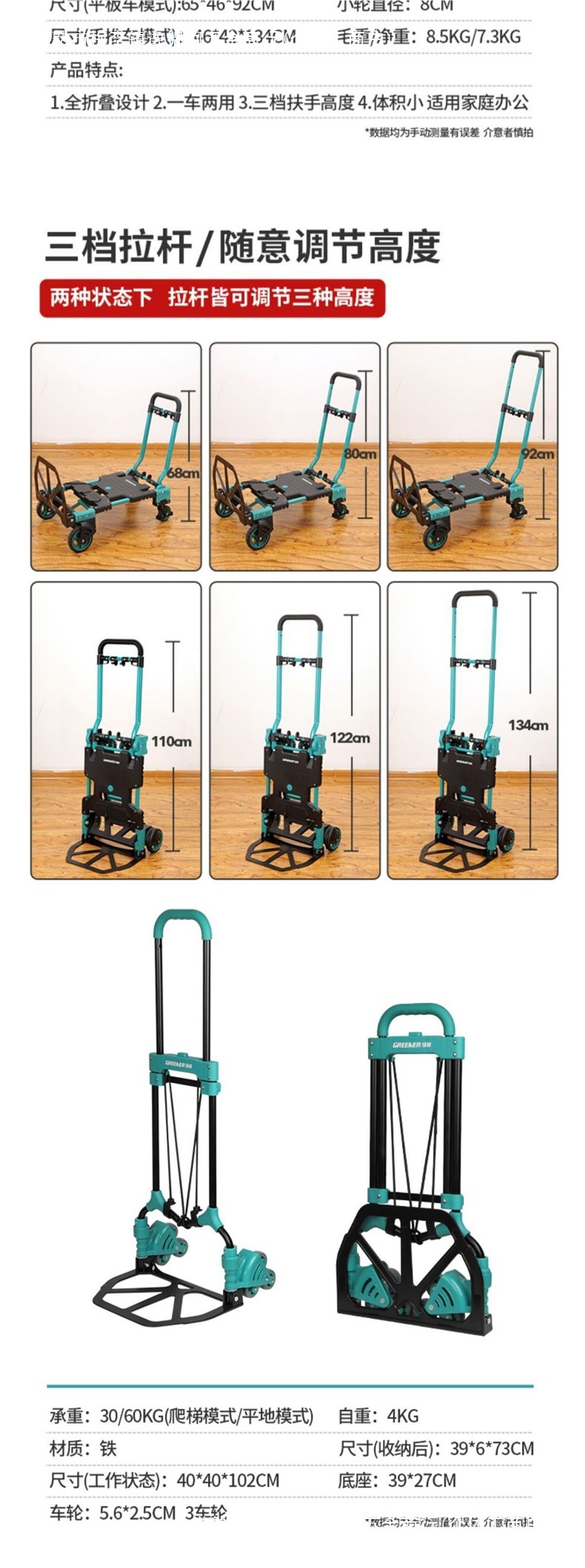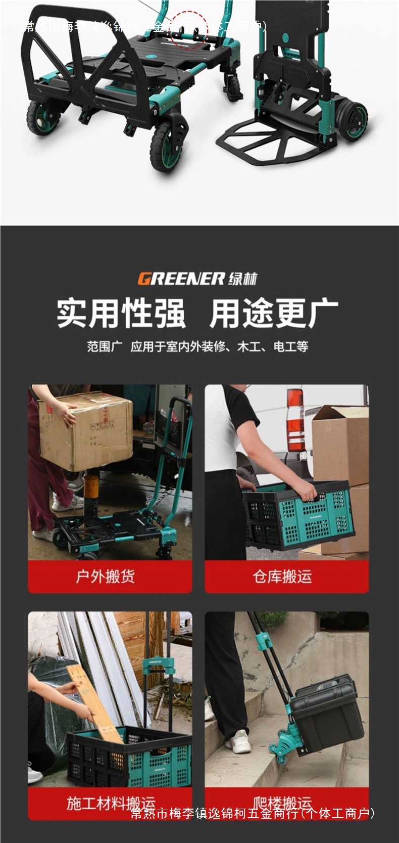 녹색 숲화물 트롤리 접이식 처리 다기능 견인 익스프레스 플랫 트레일러 휴대용 회전율스토어 가기