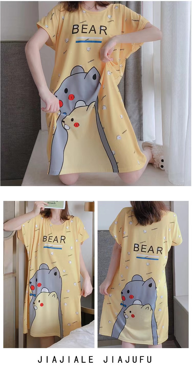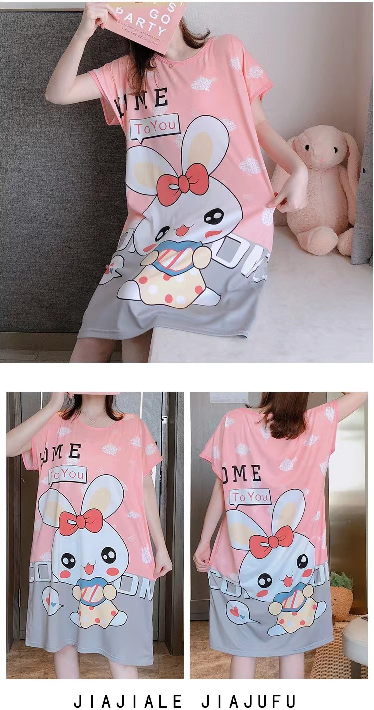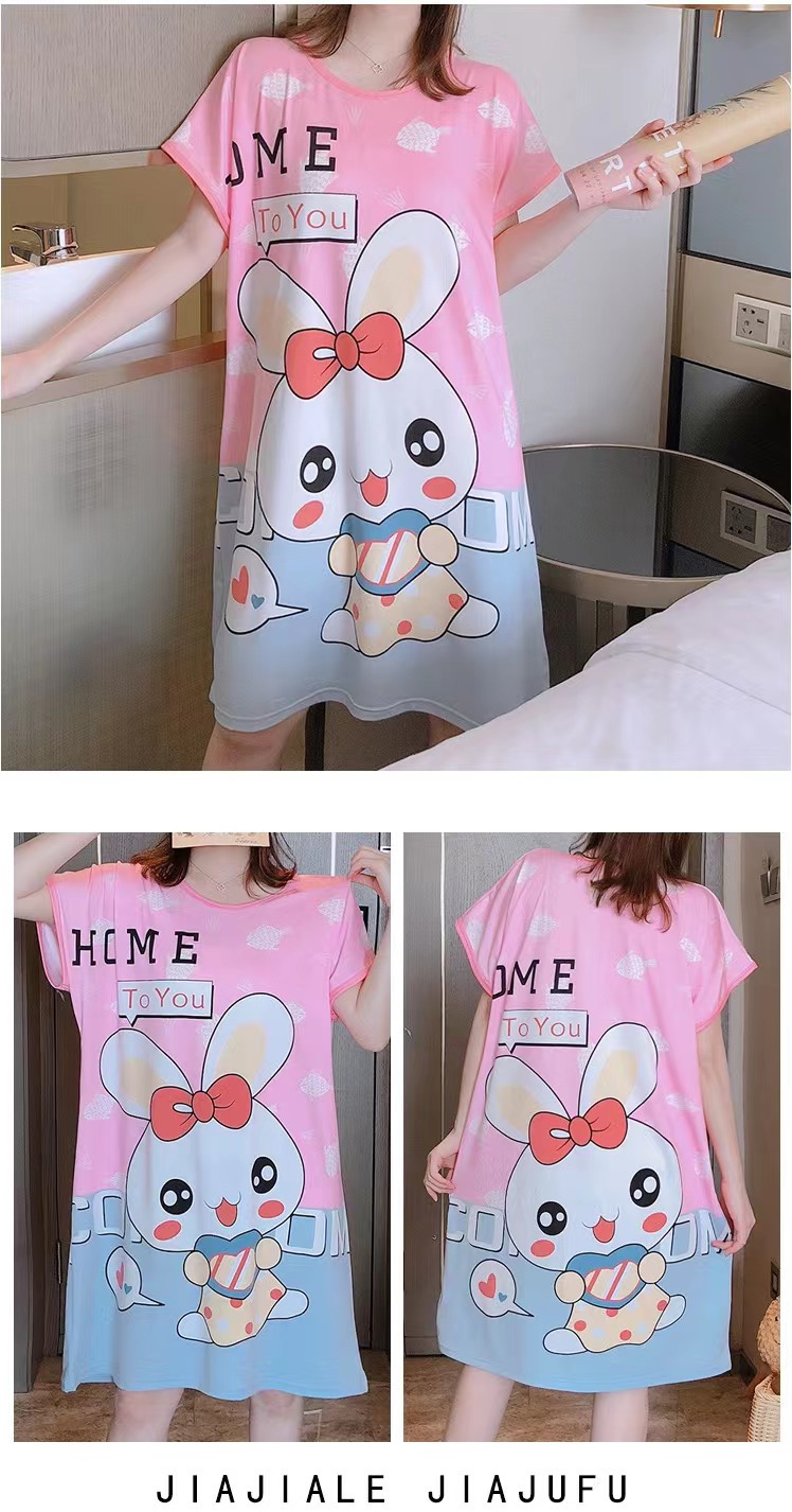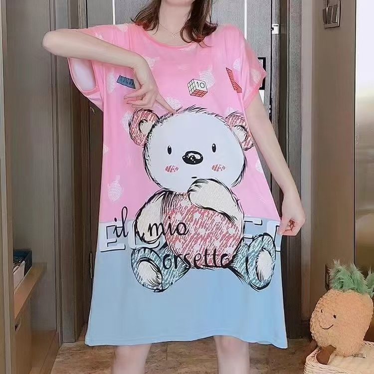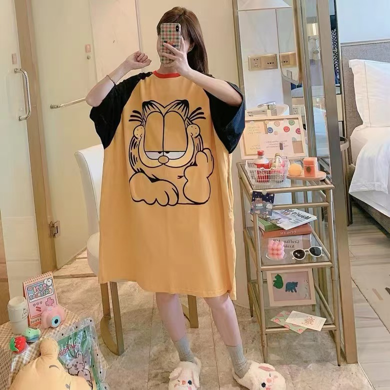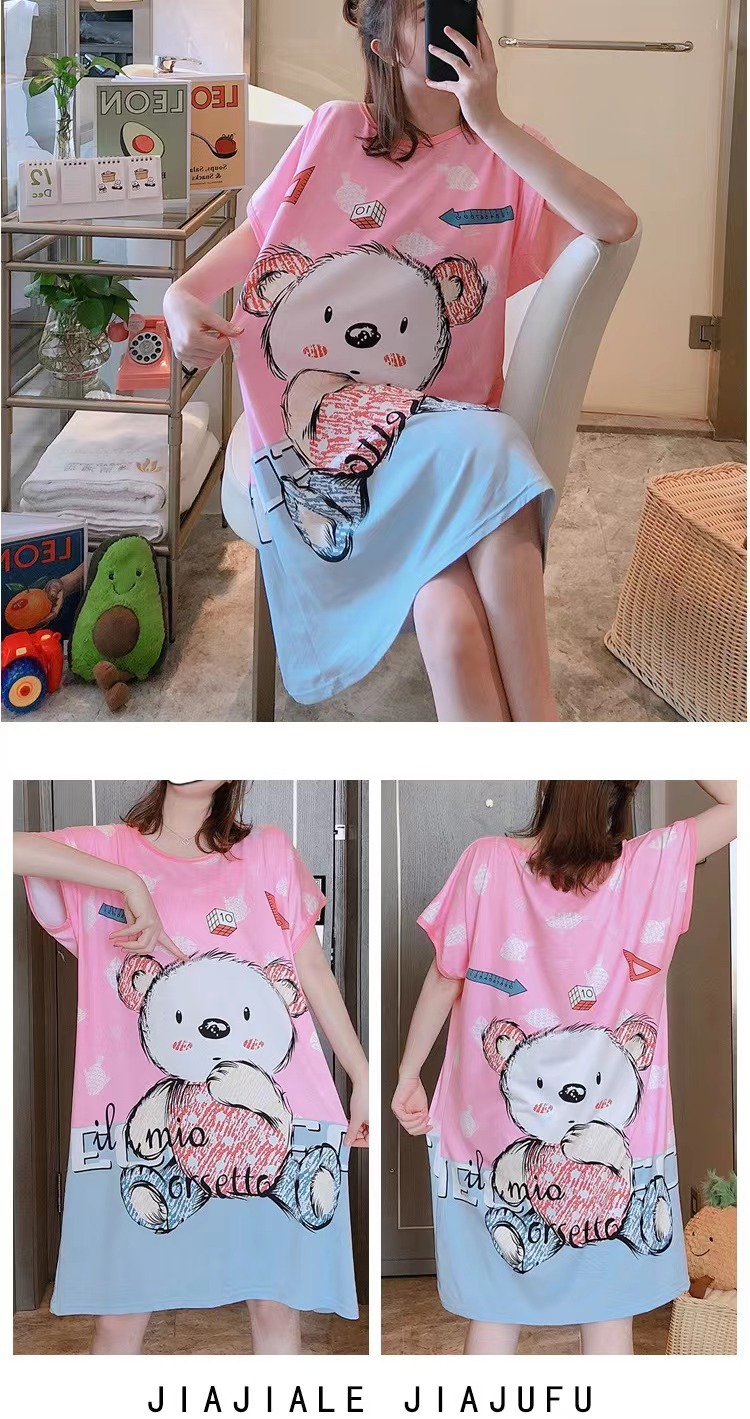 새로운 스타일 잠옷 여름 여성의 반팔 귀여운 만화 그물 빨간 잠옷 여성의 여름 느슨한 여성의 봄과 가을 홈 옷스토어 가기
