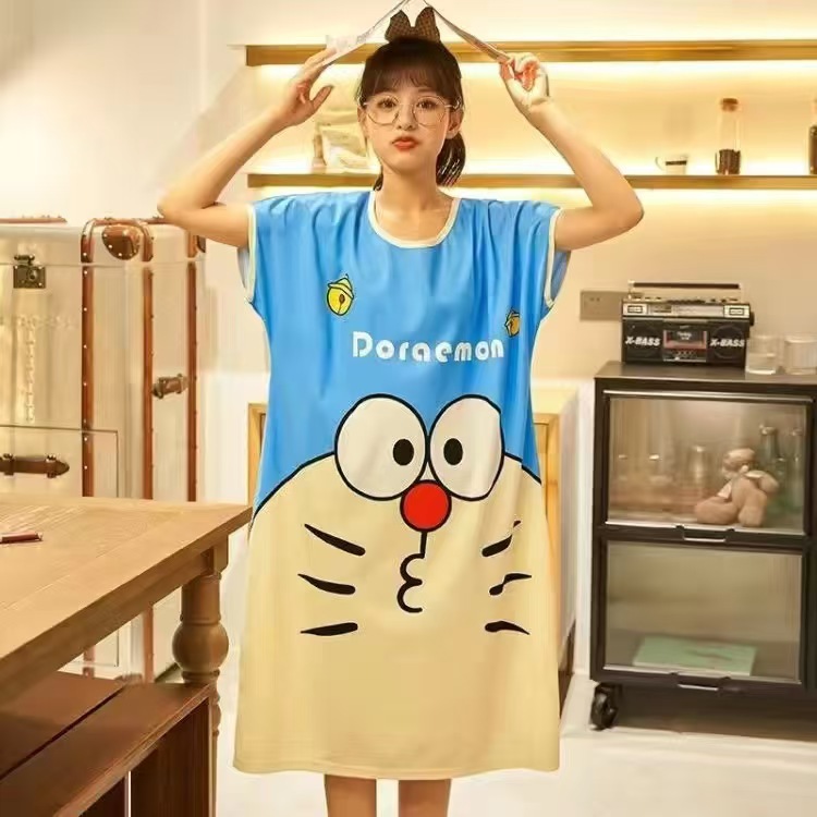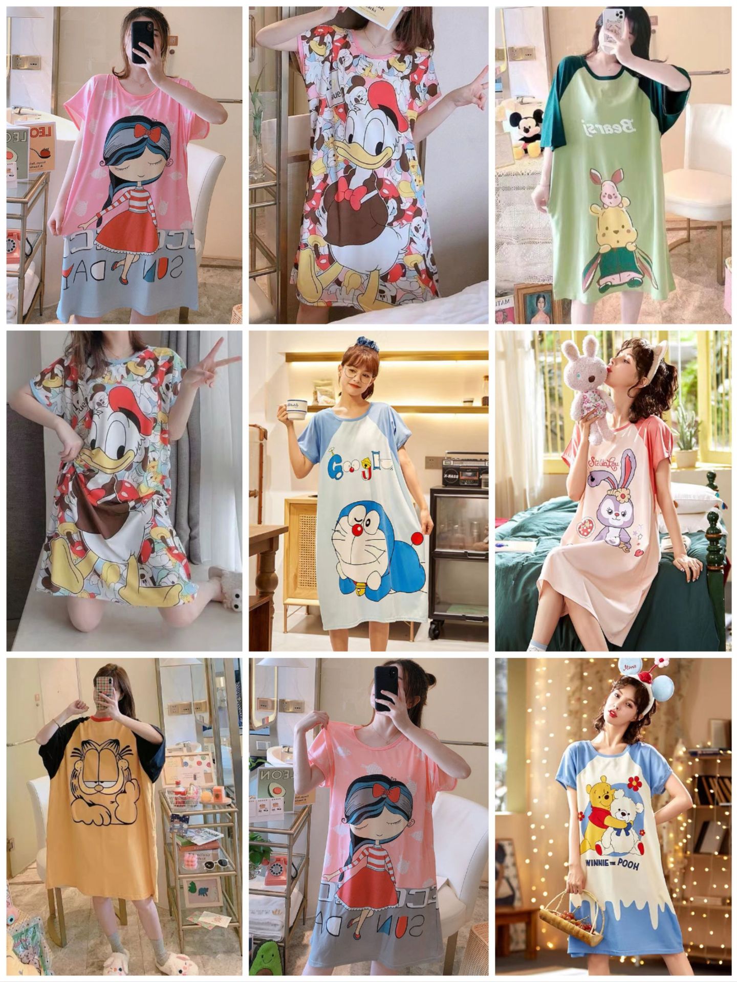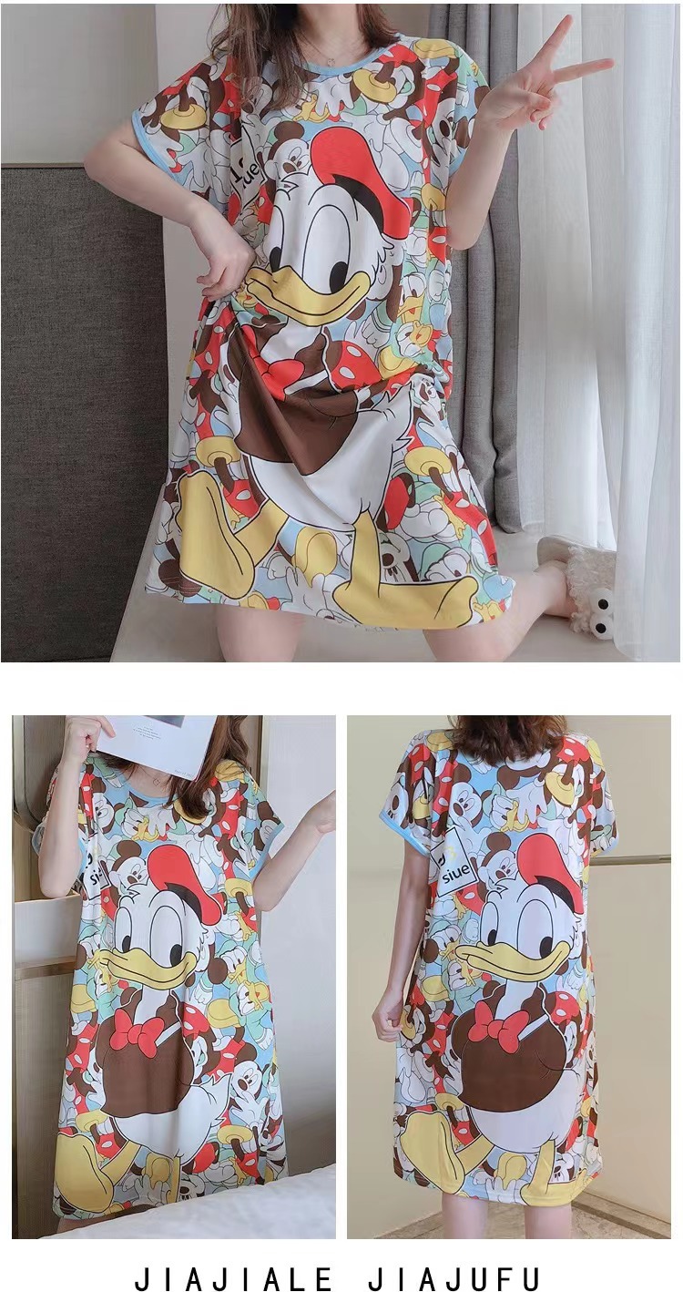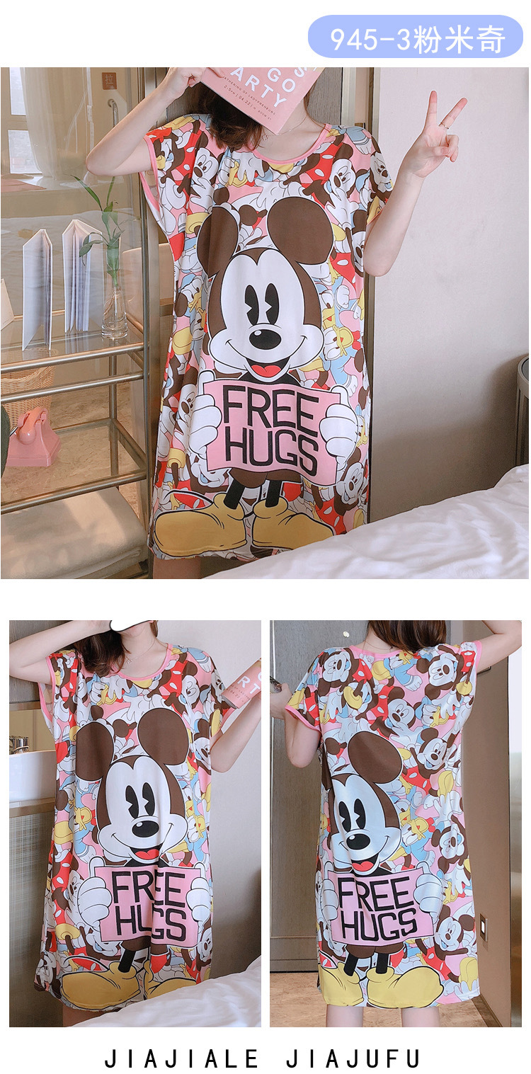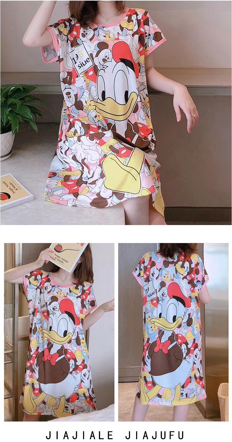 새로운 스타일 잠옷 여름 여성의 반팔 귀여운 만화 그물 빨간 잠옷 여성의 여름 느슨한 여성의 봄과 가을 홈 옷스토어 가기