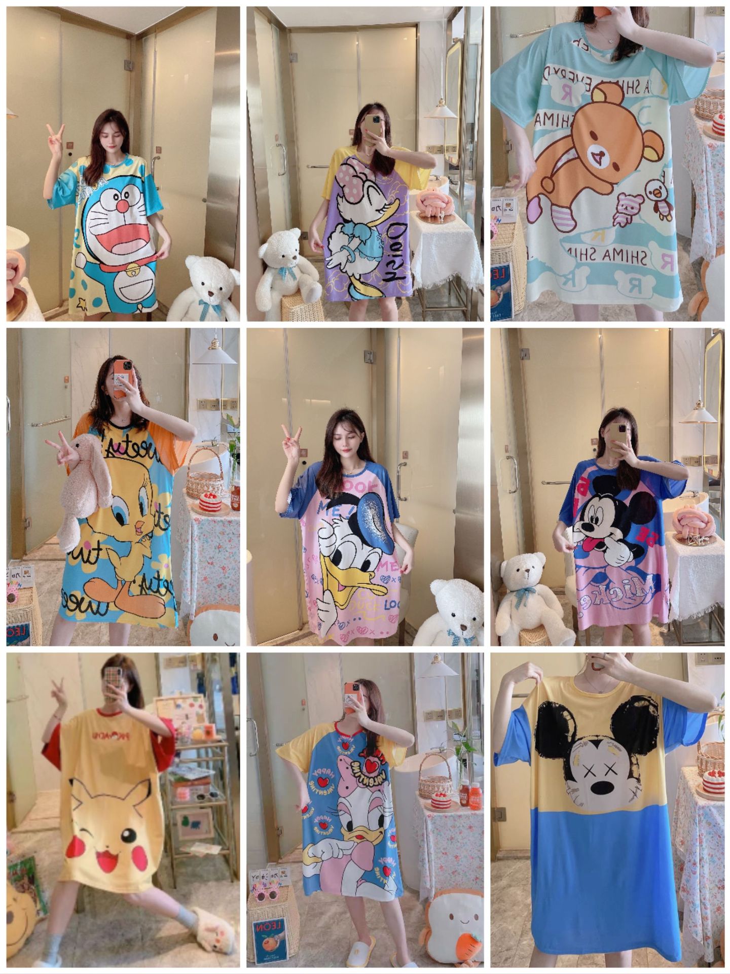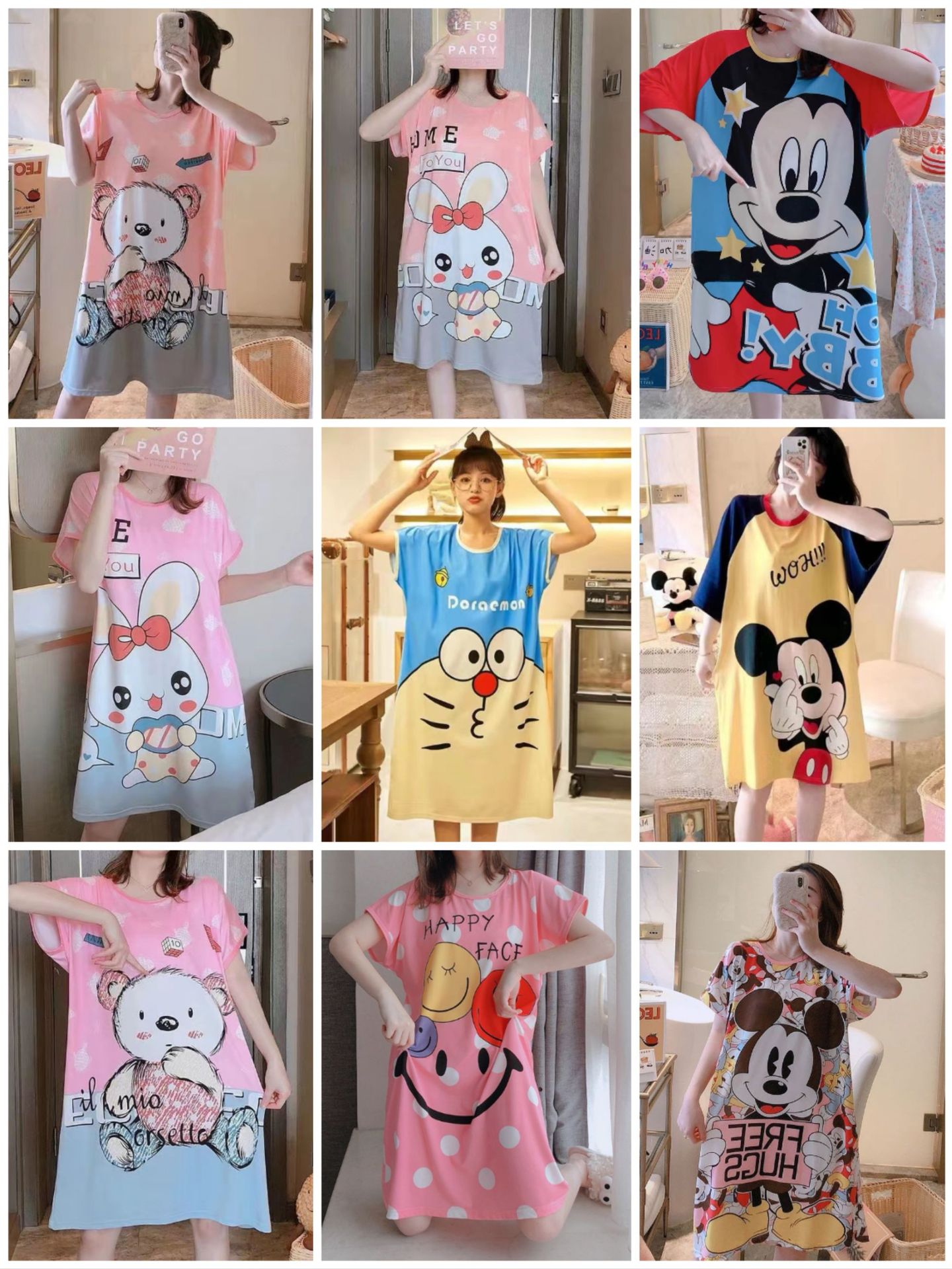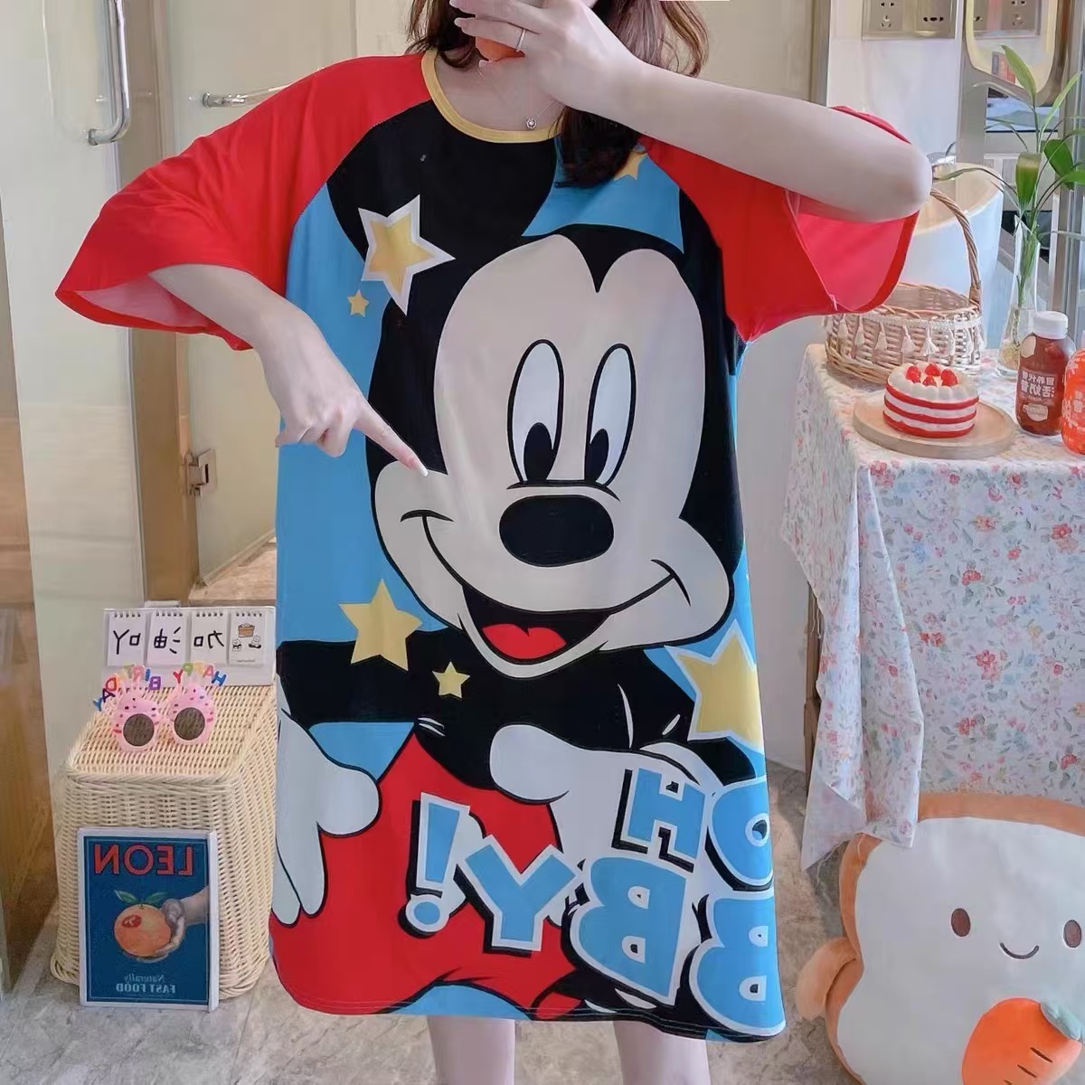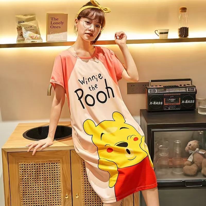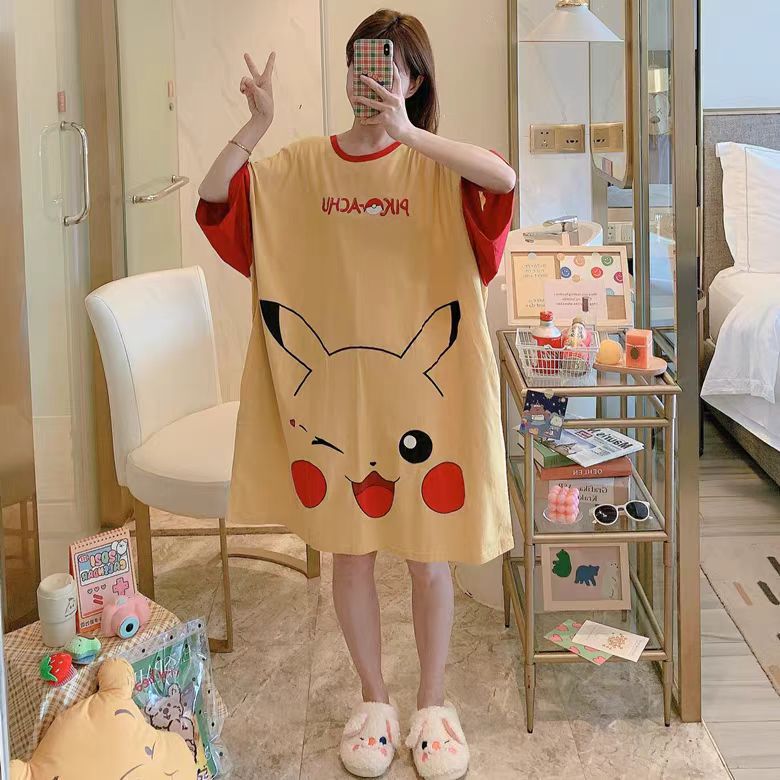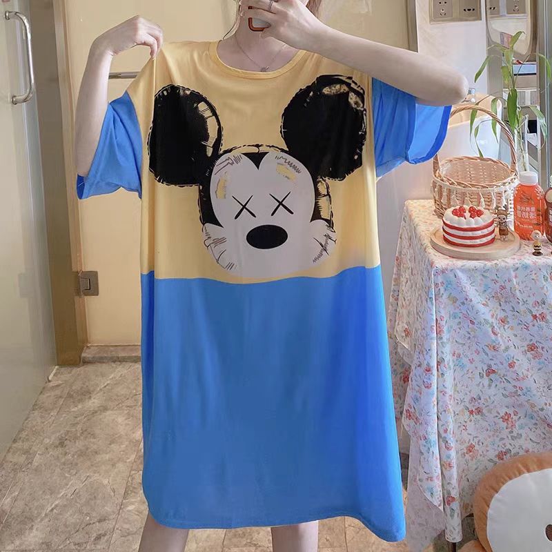 새로운 스타일 잠옷 여름 여성의 반팔 귀여운 만화 그물 빨간 잠옷 여성의 여름 느슨한 여성의 봄과 가을 홈 옷스토어 가기