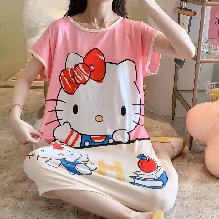새로운 스타일 잠옷 여름 여성의 반팔 귀여운 만화 그물 빨간 잠옷 여성의 여름 느슨한 여성의 봄과 가을 홈 옷