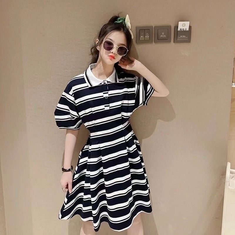 여자 원피스 여름 원피스 어린이 2025 새로운 한국 스타일 서양식 캐주얼 스트라이프 스커트 슬리밍 패션 트렌드