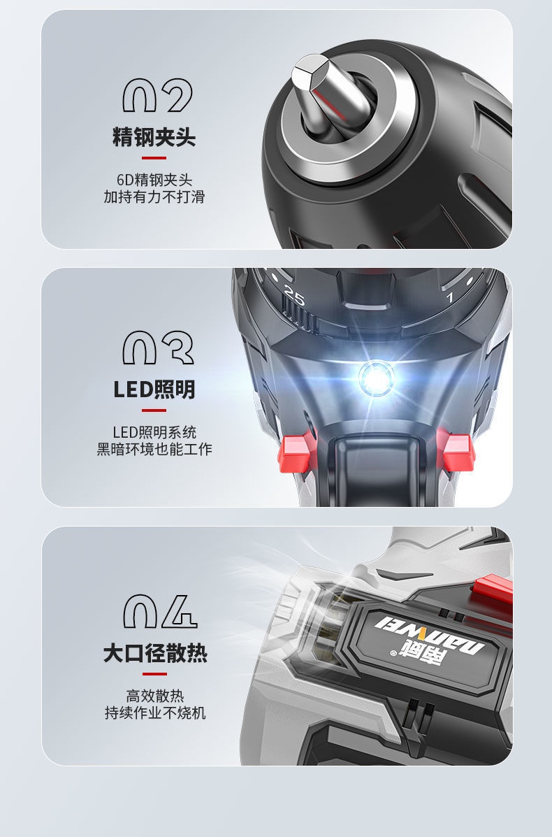브러시리스 리튬 전기 드릴 다기능 리튬 전기 드릴 고출력 충전식 드릴 핸드 건 드릴 전기 스크루 드라이버 충격 드릴 기타