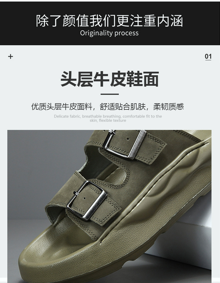 [가격제어] 남성용 정품 가죽 여름 캐주얼 신발 올매치 영국 슬리퍼 유럽역 트렌디한 신발 남성용 통기성 슬리퍼