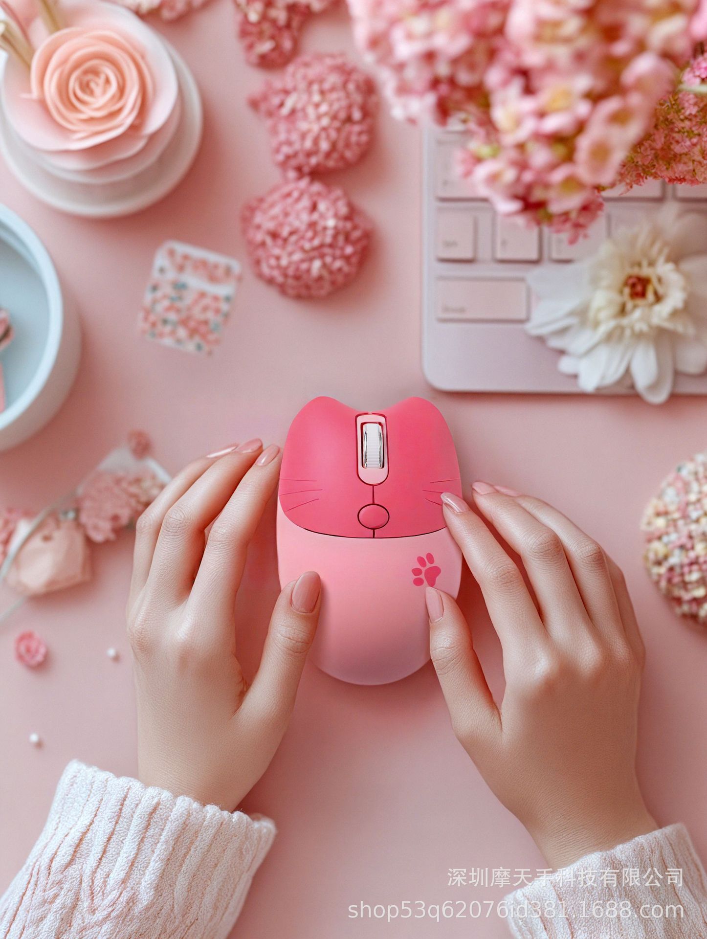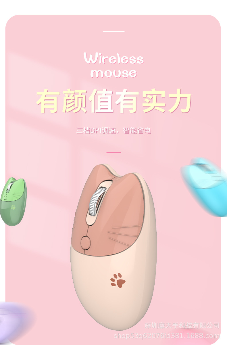 Mofii 마천루 손 공장 뜨거운 M3 귀여운 Meow Meng 만화 무선 2.4G 블루투스 듀얼 모드 음소거 마우스