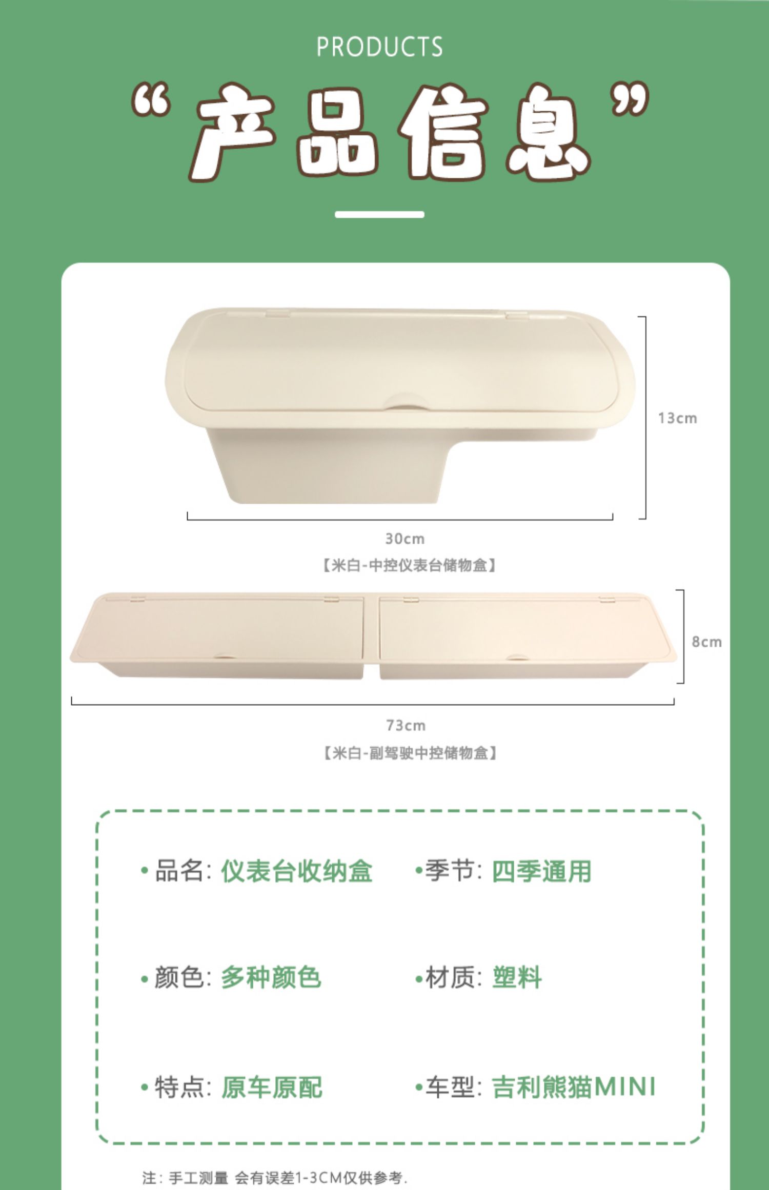 팬더 미니 특수 카트 중앙 제어 수정 용품 계기판 액세서리 장식 Geely 미니 프론트 스토리지 박스