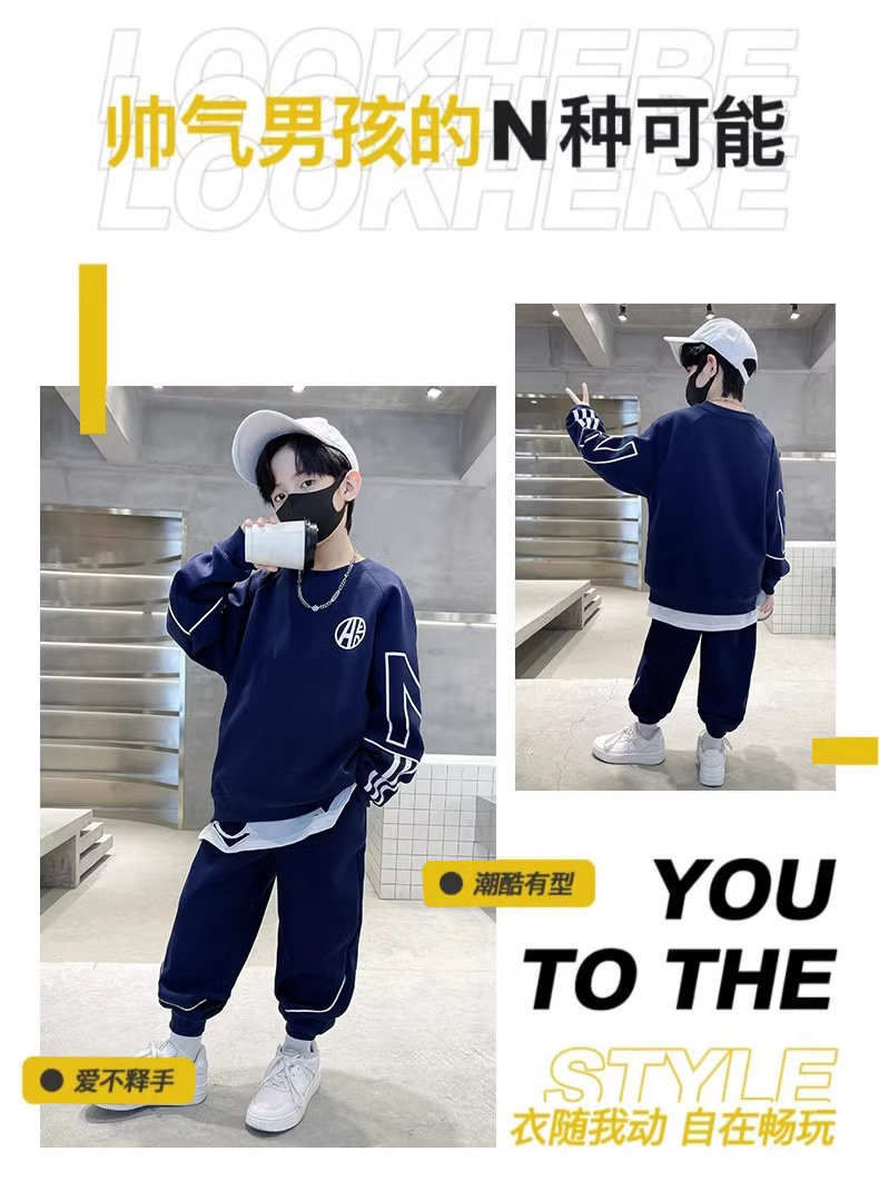 소년 가을 의류 세트 2025 새로운 중대형 어린이 Edie 투피스 세트 소년 잘 생긴 유행 봄 가을 옷