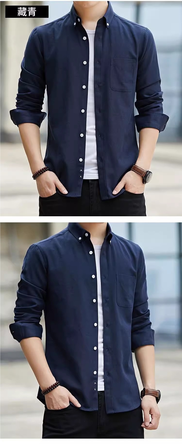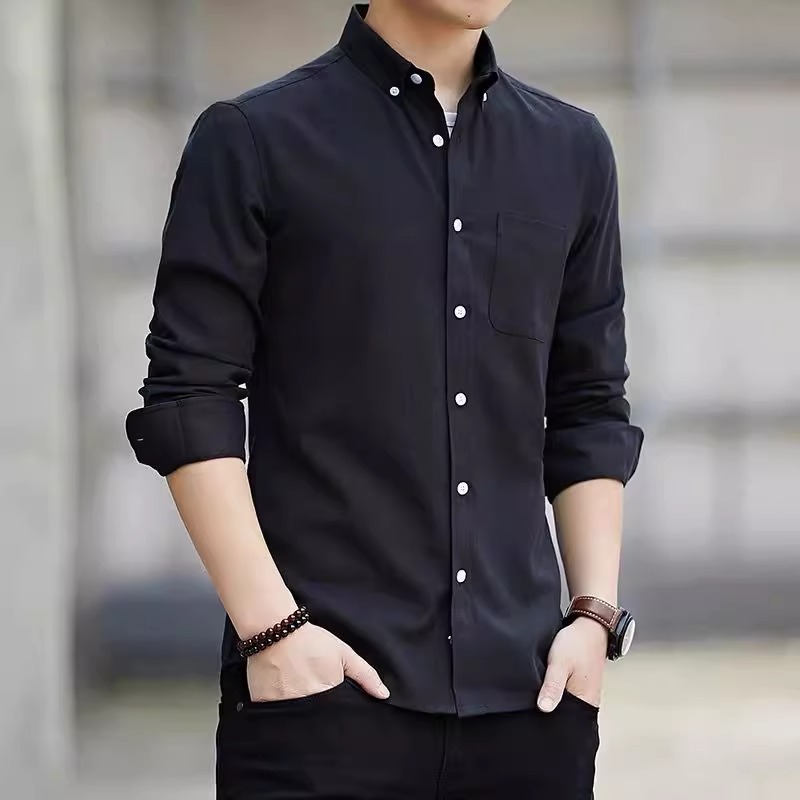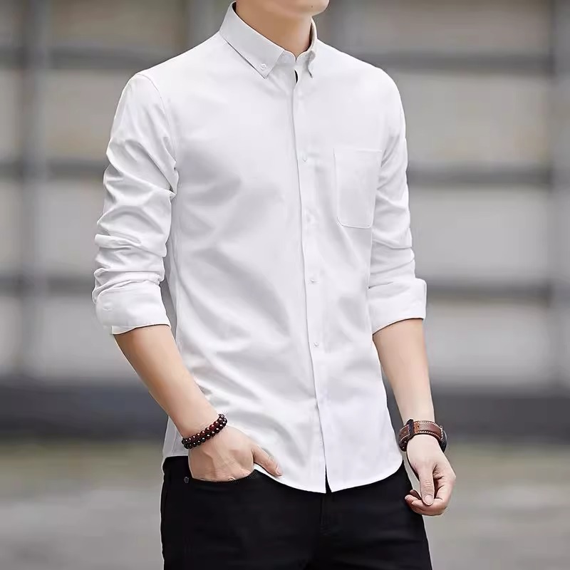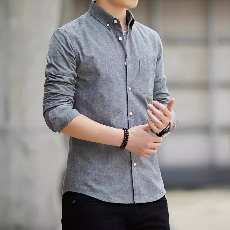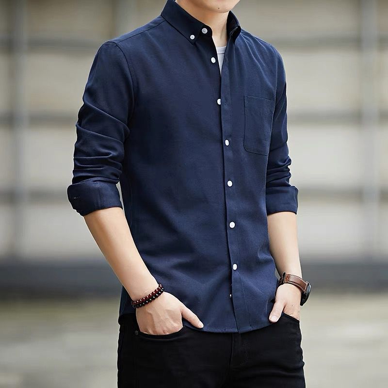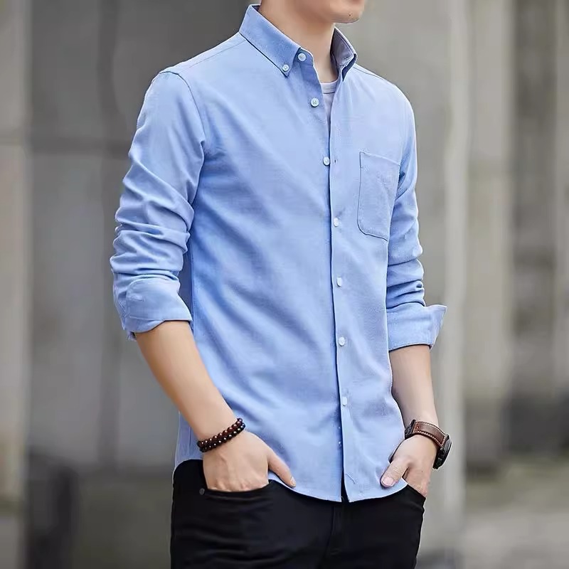여름 옥스포드 직물 긴팔 셔츠 남성용 봄 가을 중년 비즈니스 캐주얼 남성복 얇은 트렌디 셔츠스토어 가기