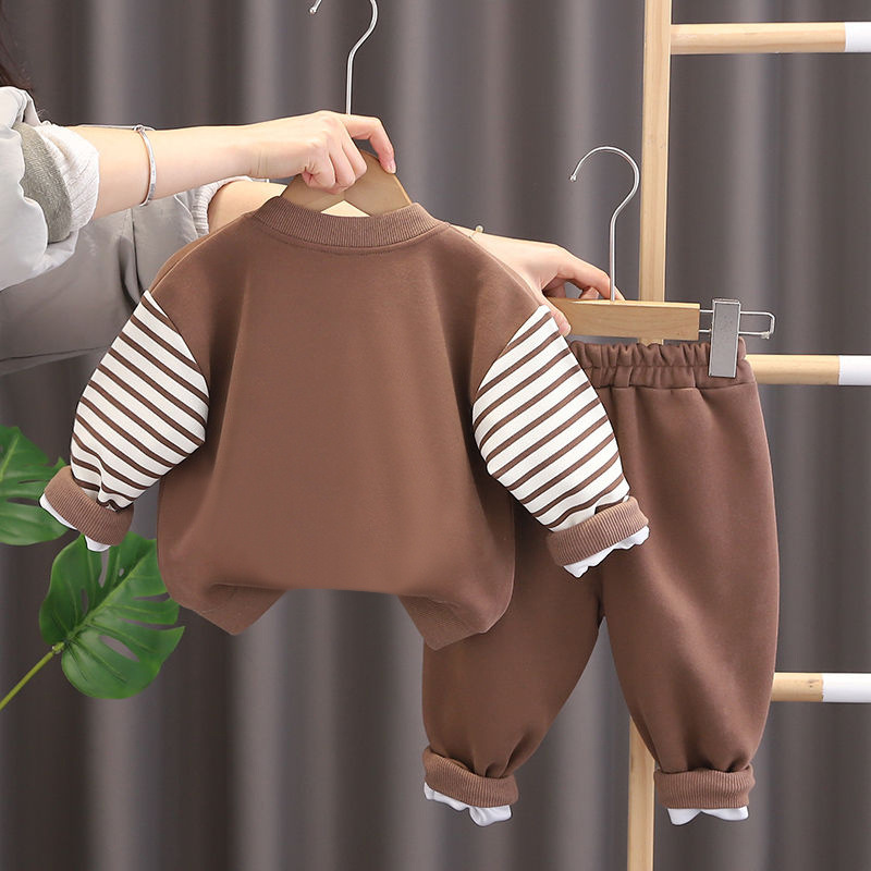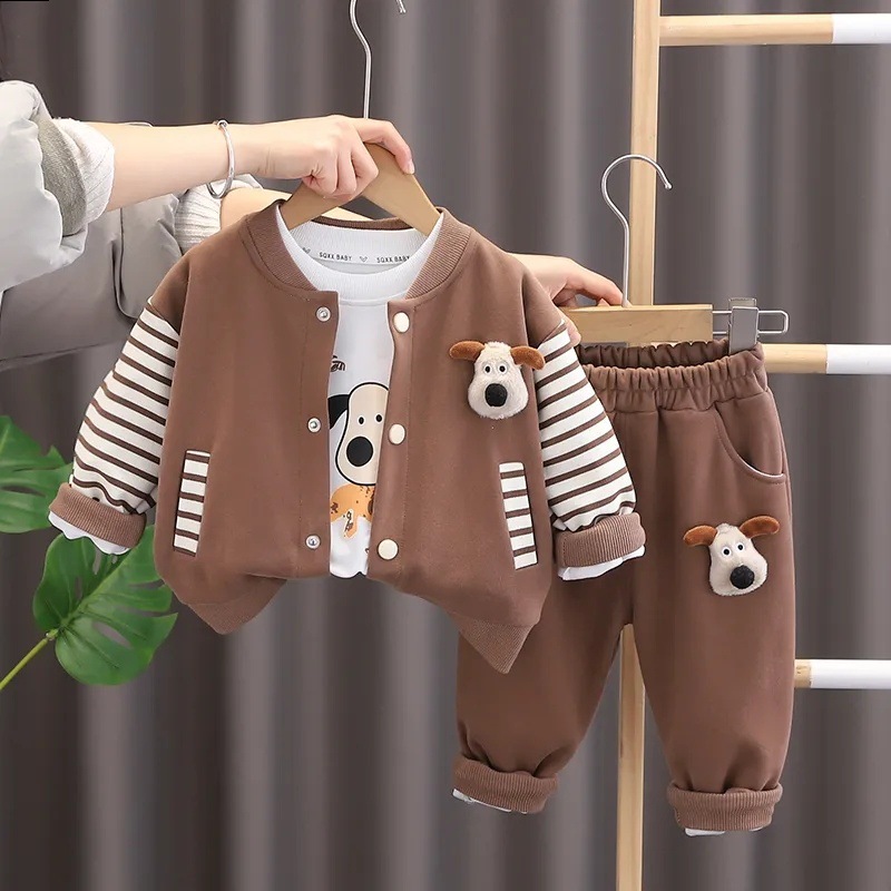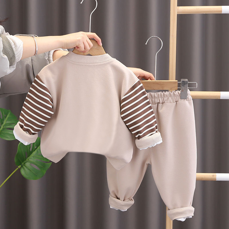 소년 아동복 봄과 가을 세트 2025 새로운 아기 잘 생긴 캐주얼 어린이 긴팔 3 피스 세트 유행 줄무늬스토어 가기