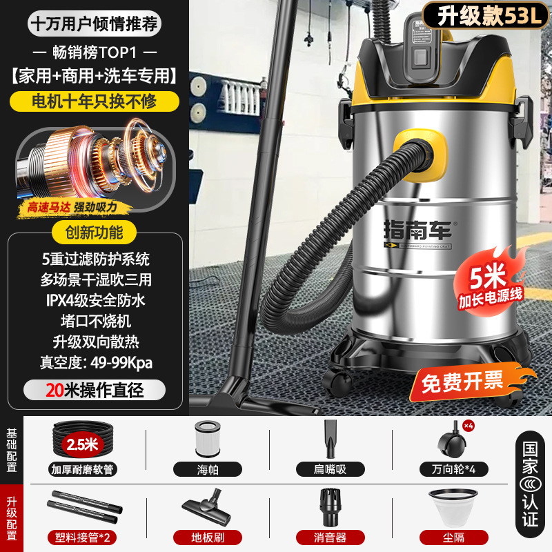 • [고효율 공냉식 모터 - 3200W 스테인레스 스틸 배럴 + 99780PA 강력한 흡입] 53L 물 흡수 + 황무지 개간 + 가정용 + 봉제 + 세차