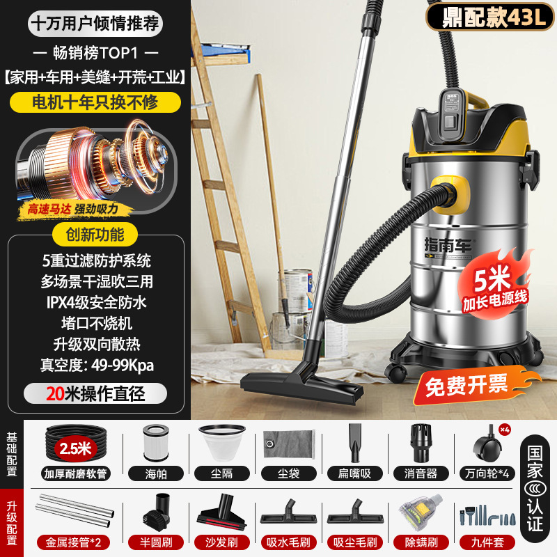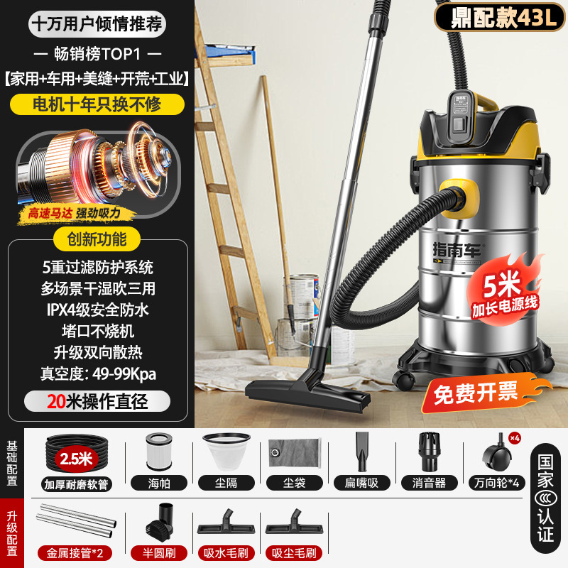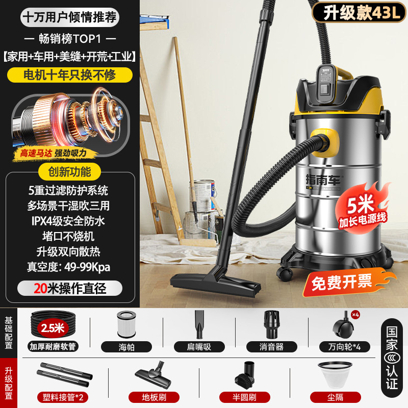 • [공냉식 모터 - 2800W 스테인레스 스틸 배럴 + 99000PA 강력한 흡입] 43L 물 흡수 + 황무지 개간 + 가정용 + 아름다운 재봉 + 세차