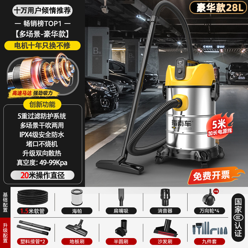 • [고효율 터빈 모터 2200W 두꺼운 스테인레스 스틸 배럴 + 93900PA 대형 흡입력] 28L 녹 방지 금속 막대 + 아름다운 솔기 + 세차 모델