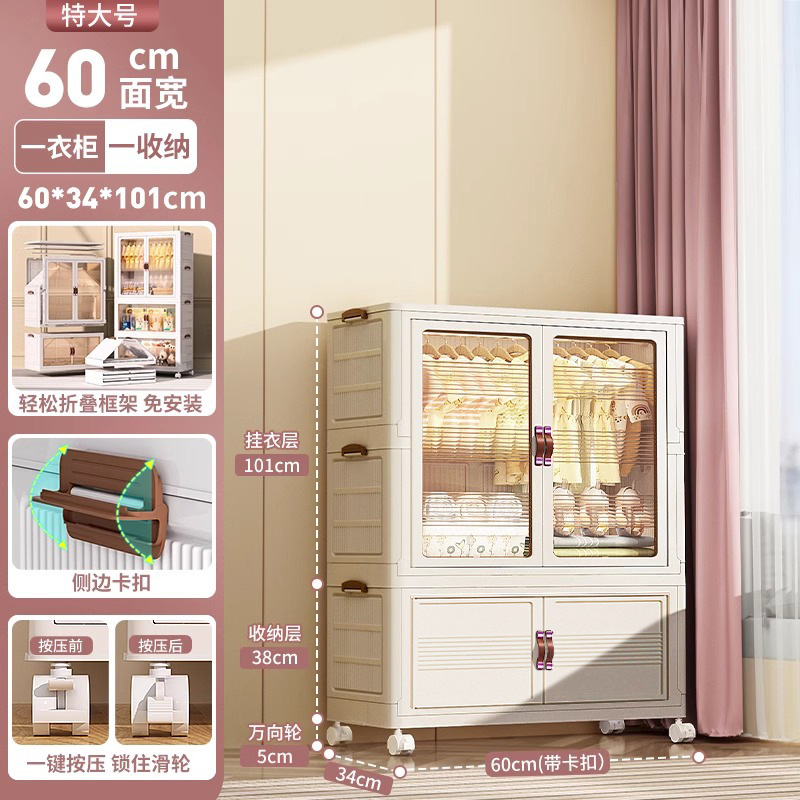 • 폭 65CM - 2단 옷장 + 1단 수납함 [행거 10개 무료]