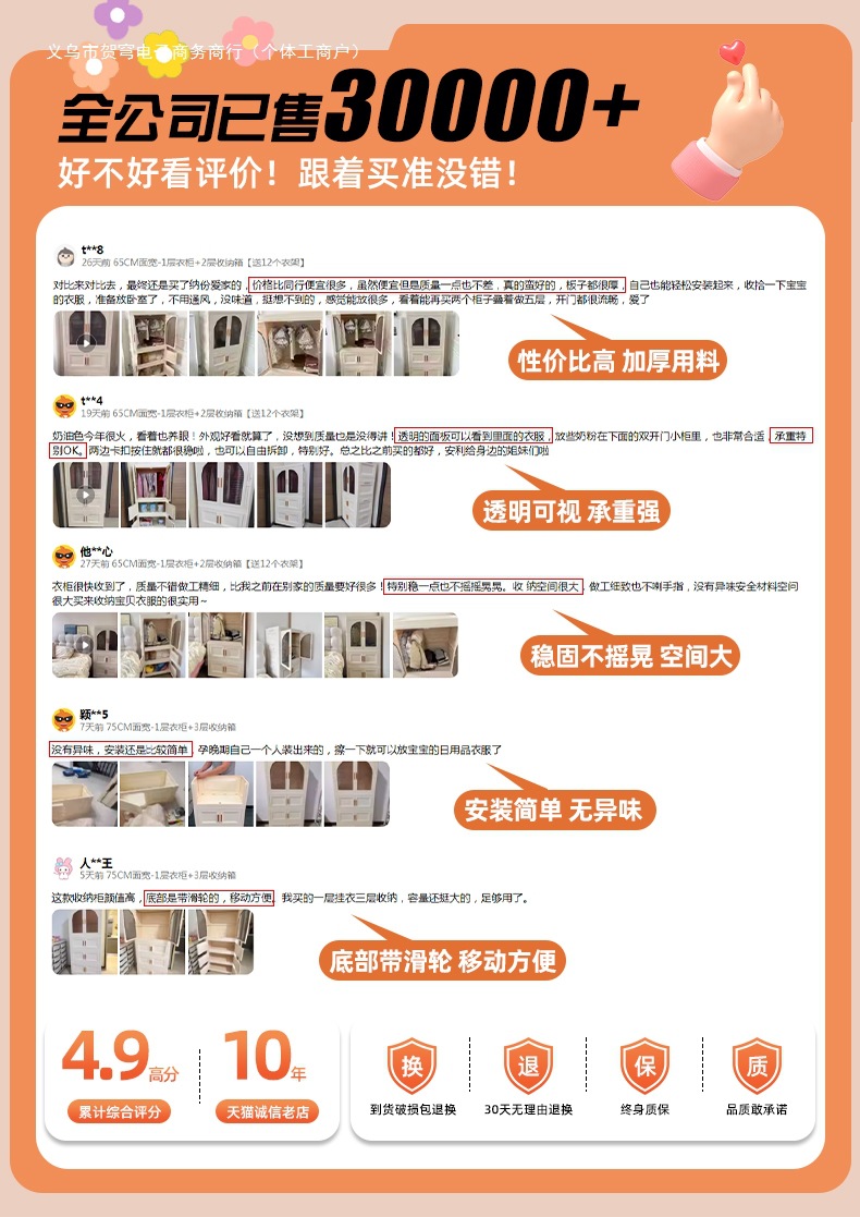 • 폭 75CM - 1단 옷장 + 4단 수납함 [행거 10개 무료] 70% 고객 선택