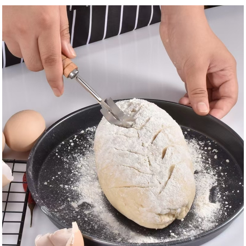 국경 간 베이킹 도구 304 스테인레스 스틸 빵 절단 칼 바게트 빵 트리밍 나이프 너도밤 나무 손잡이 빵 절단 칼