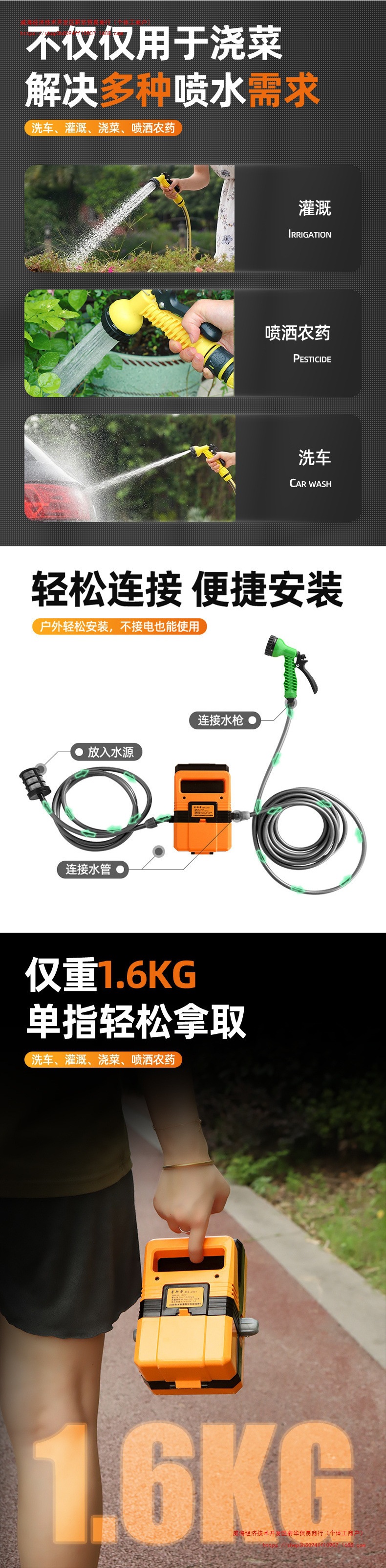 작은 가정용 충전식 펌프 휴대용 농업 관개 물 꽃 야채 자동차 세척 야외 관개
