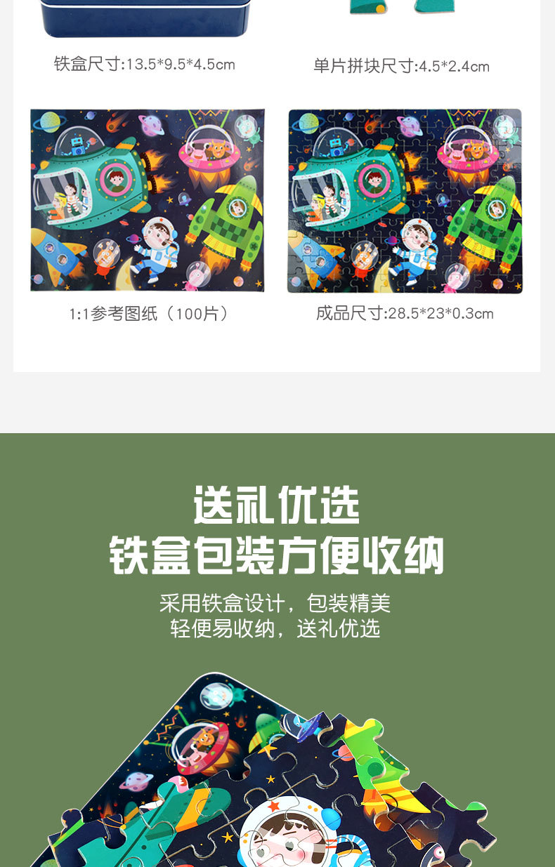 【100片铁盒装拼图】尺寸13.5*9.5*5cm 重量0.25kg 装箱数96