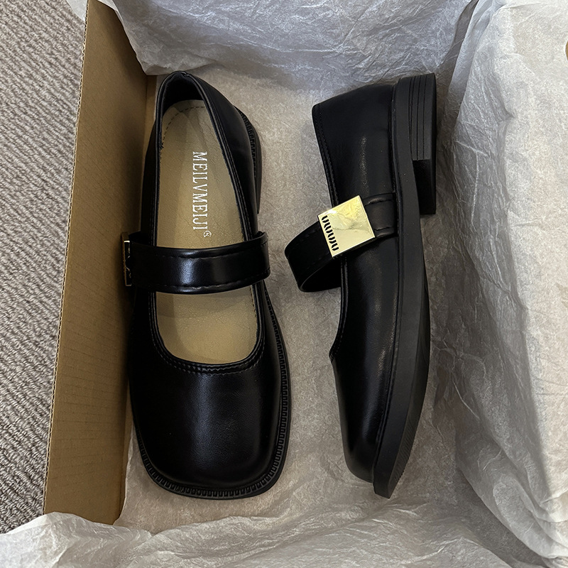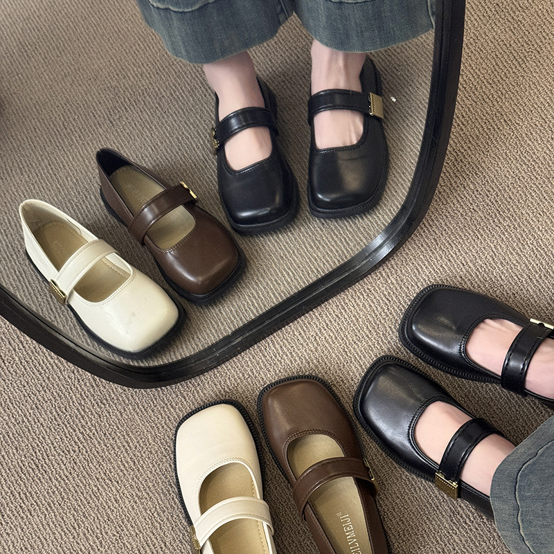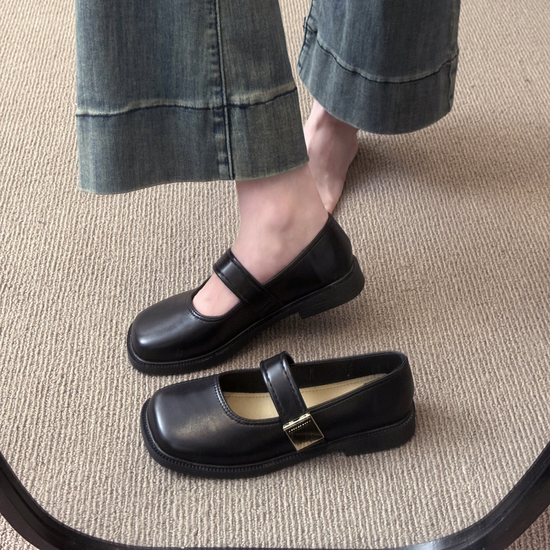 프랑스 스타일 메리 제인 신발 여성 여름 올 매치 플랫 블랙 영국 스타일 작은 가죽 신발 저녁과 저녁 신발 부드러운 스타일 트렌디 한 싱글 레이어 신발스토어 가기