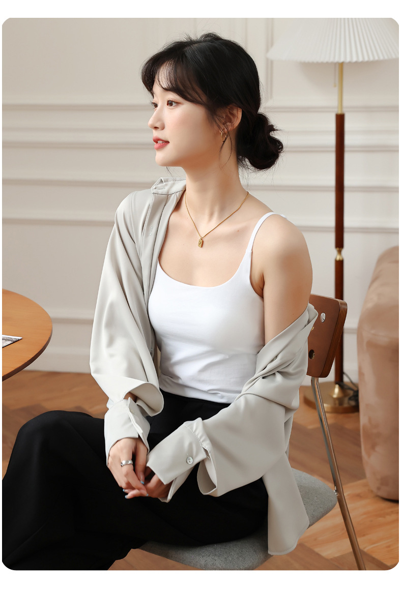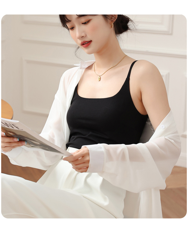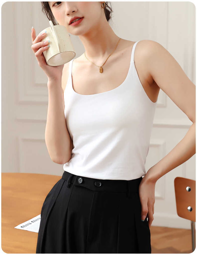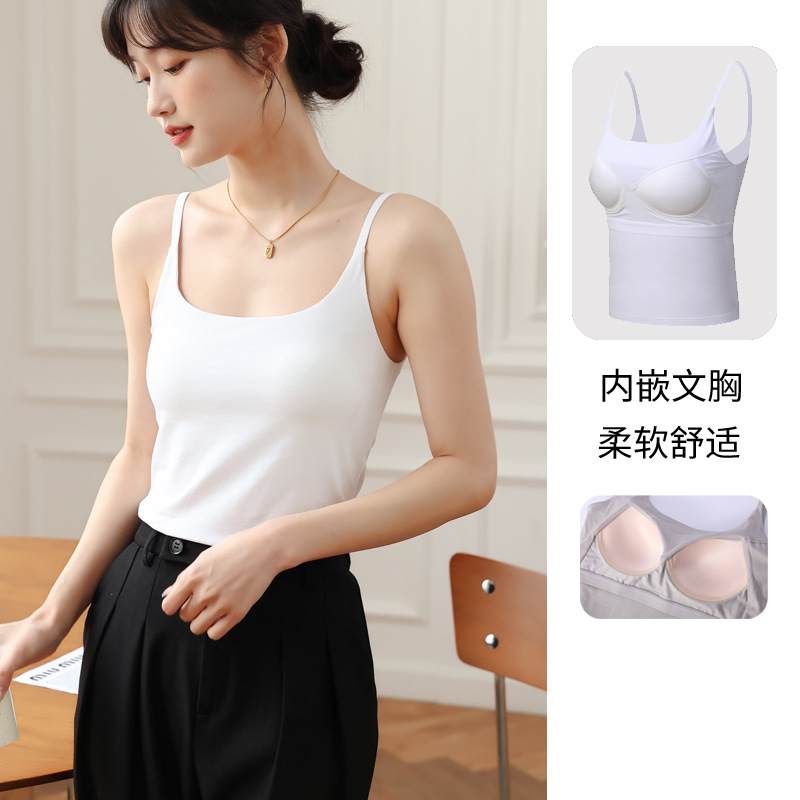 여름 카미 솔 여자 내부 조끼 가슴 패드 컵 원피스 속옷베이스 화이트 내복 미끄럼 방지 아름다운 등스토어 가기