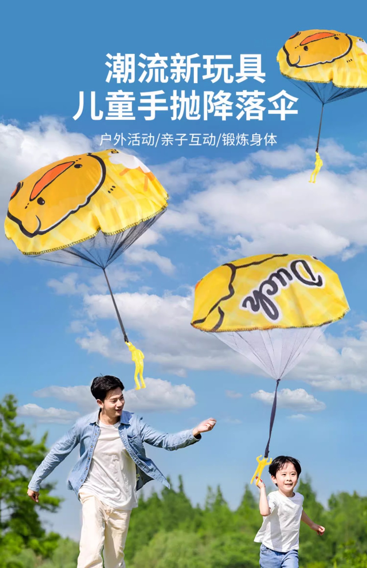 치킨 에어 드롭 야외 게임 소품 야외 스포츠 장난감을 먹는 어린이 작은 노란 오리 손 낙하산 유치원스토어 가기