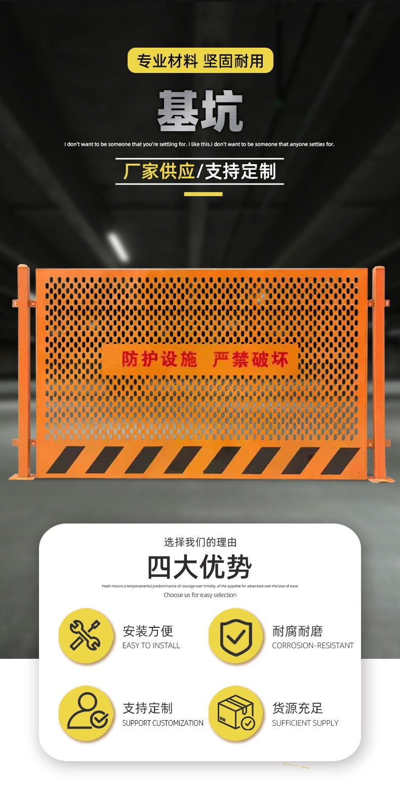 다양한 사양의 맞춤형 베이스 펀드 가드레일, 건설 현장 임시 가드레일, 건설 공사 안전 경고 격리 가드레일