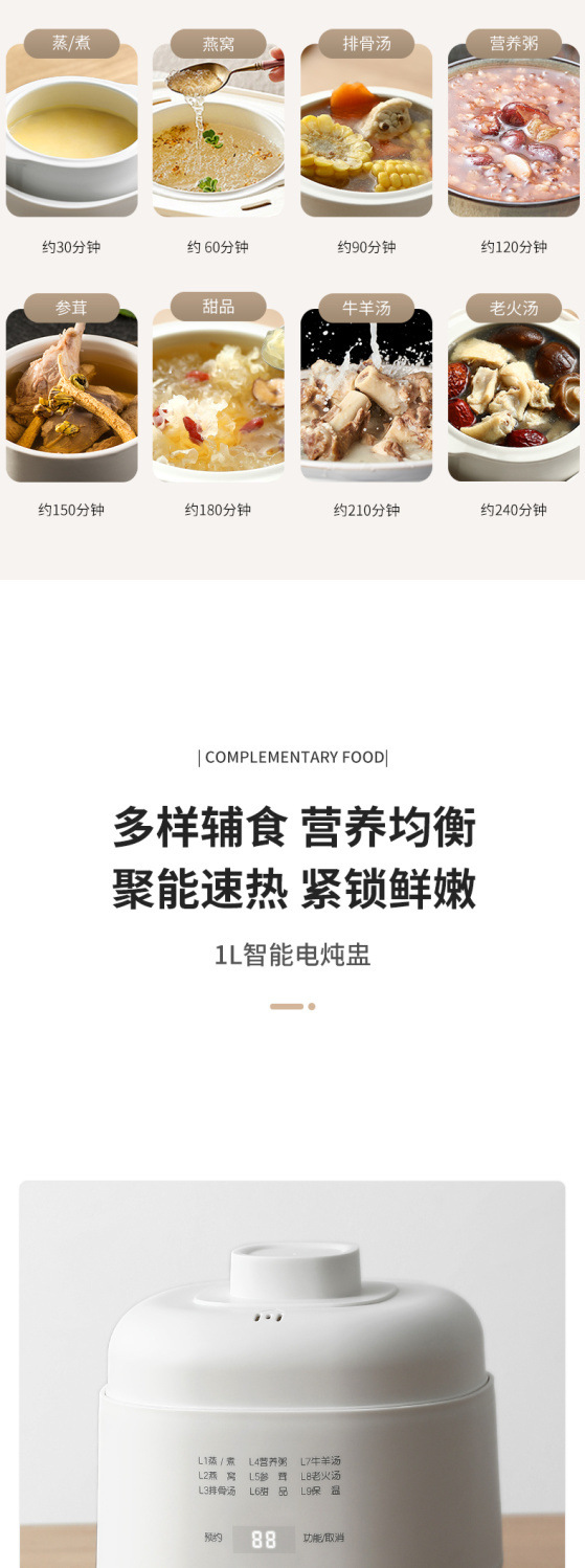 • 절전모델 + 9가지 기능 + 예약예약 + 이유식보충제