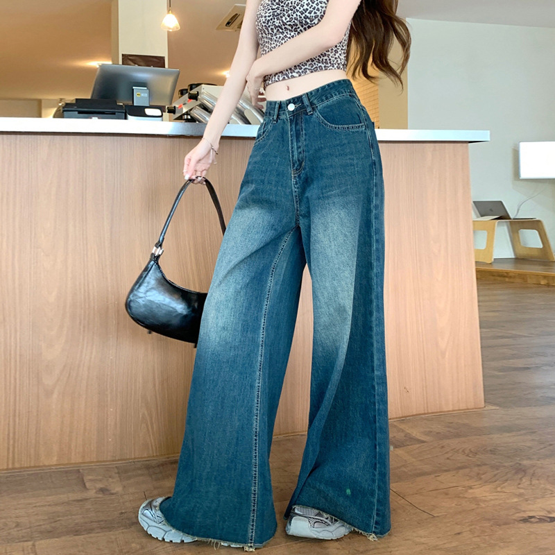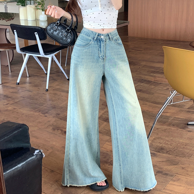 올매치 와이드 레그 청바지 여성용 라이트 컬러 느슨한 스트레이트-레그 팬츠 통통녀 플러스 사이즈 랩 디자인 높은 허리 바지스토어 가기