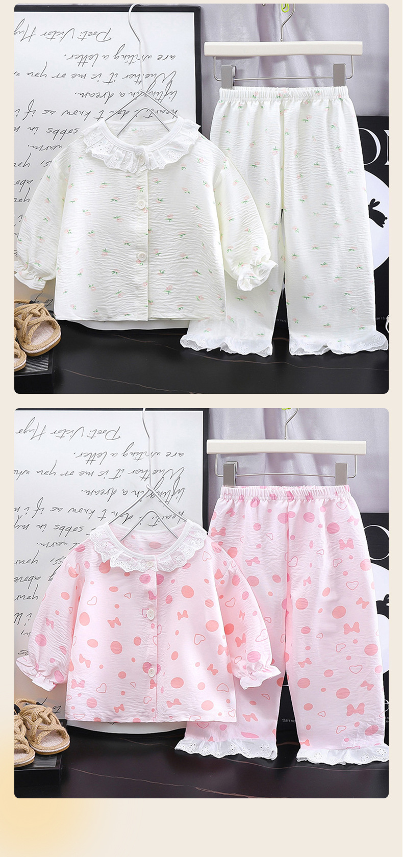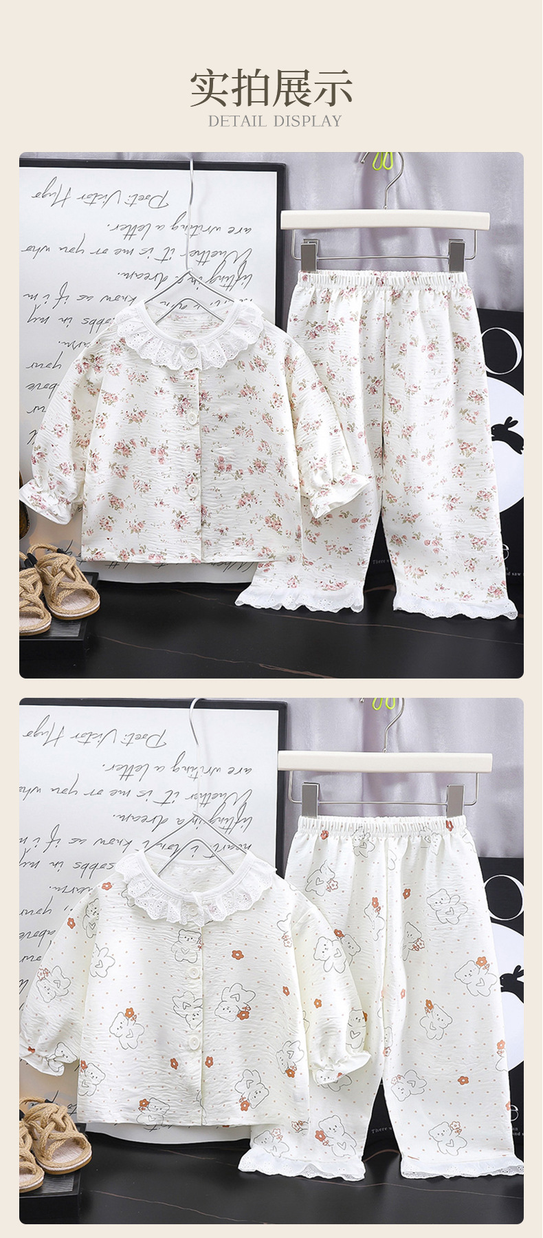 2025 새로운 가정 의류 세트 소녀 레이스 인형 칼라 에어컨 의류 얇은 통기성 여름 폭발 도매스토어 가기
