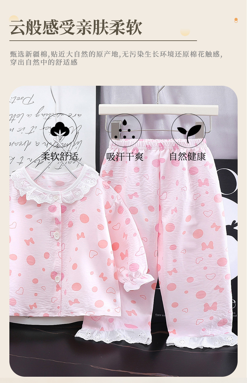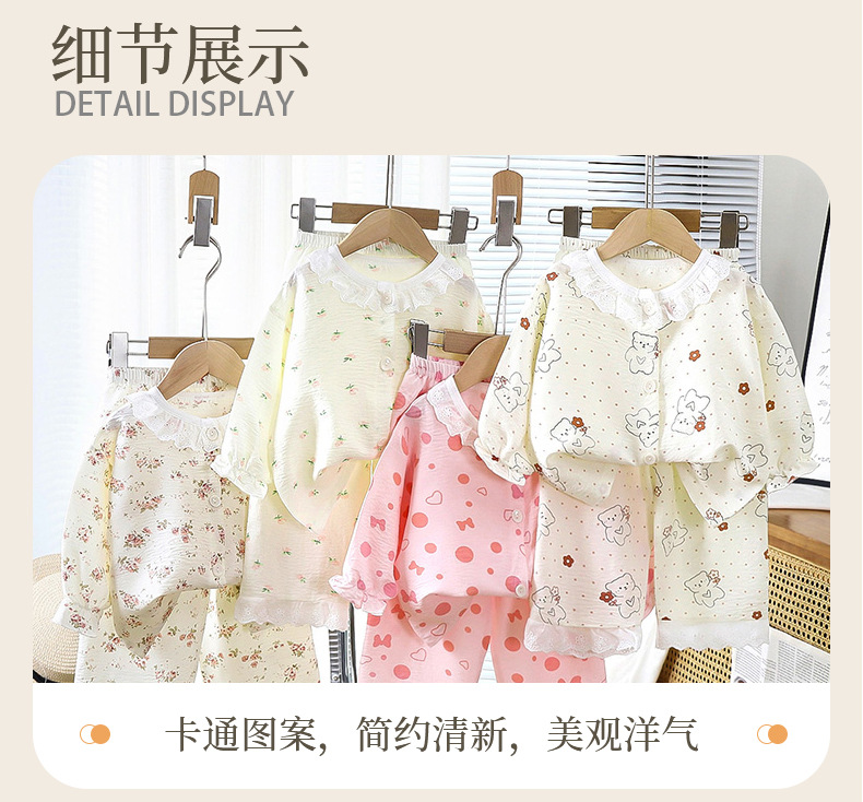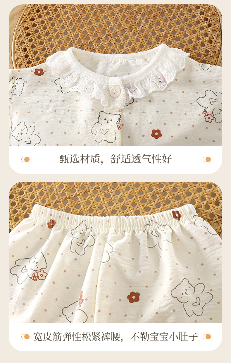 2025 새로운 가정 의류 세트 소녀 레이스 인형 칼라 에어컨 의류 얇은 통기성 여름 폭발 도매