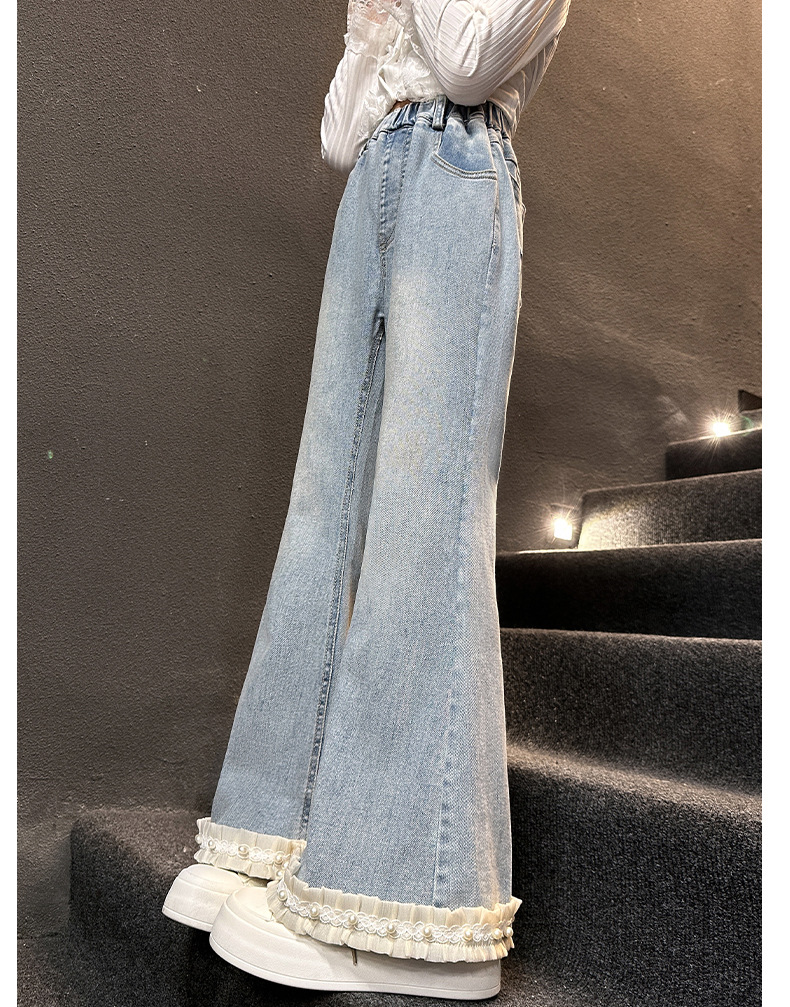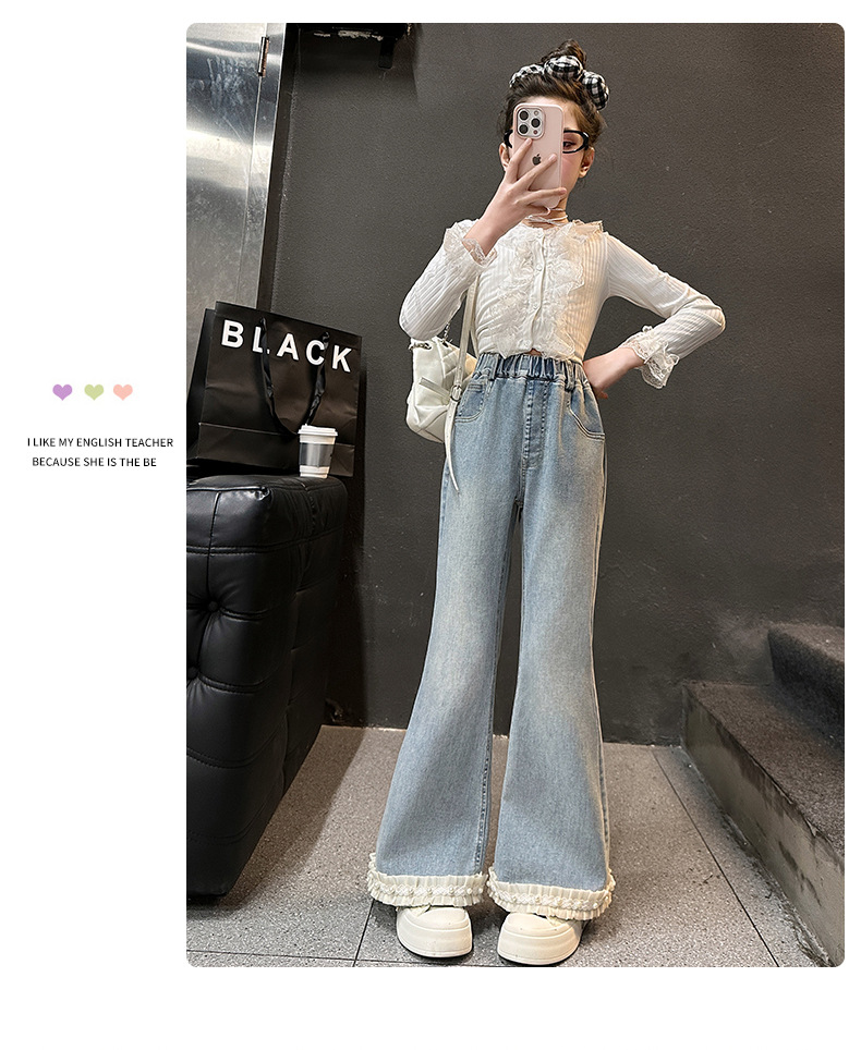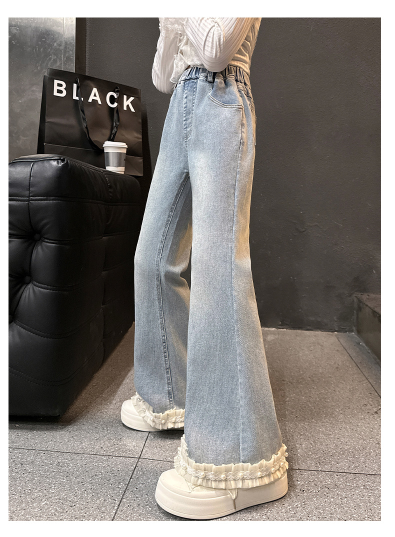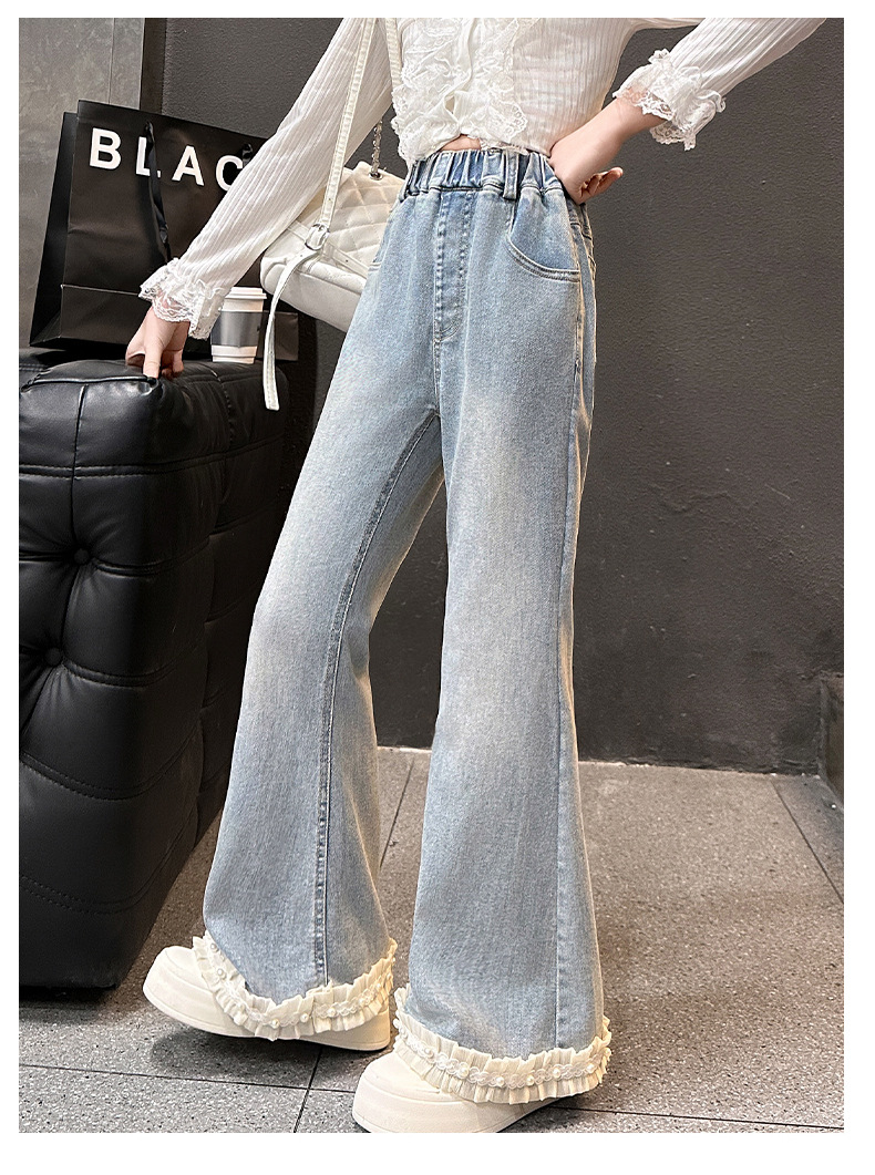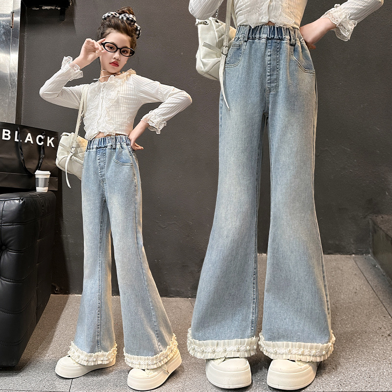 소녀 꽃 바지 봄과 가을 2025 새로운 서양식 어린이 봄 바지 큰 어린이 유행 술 청바지스토어 가기