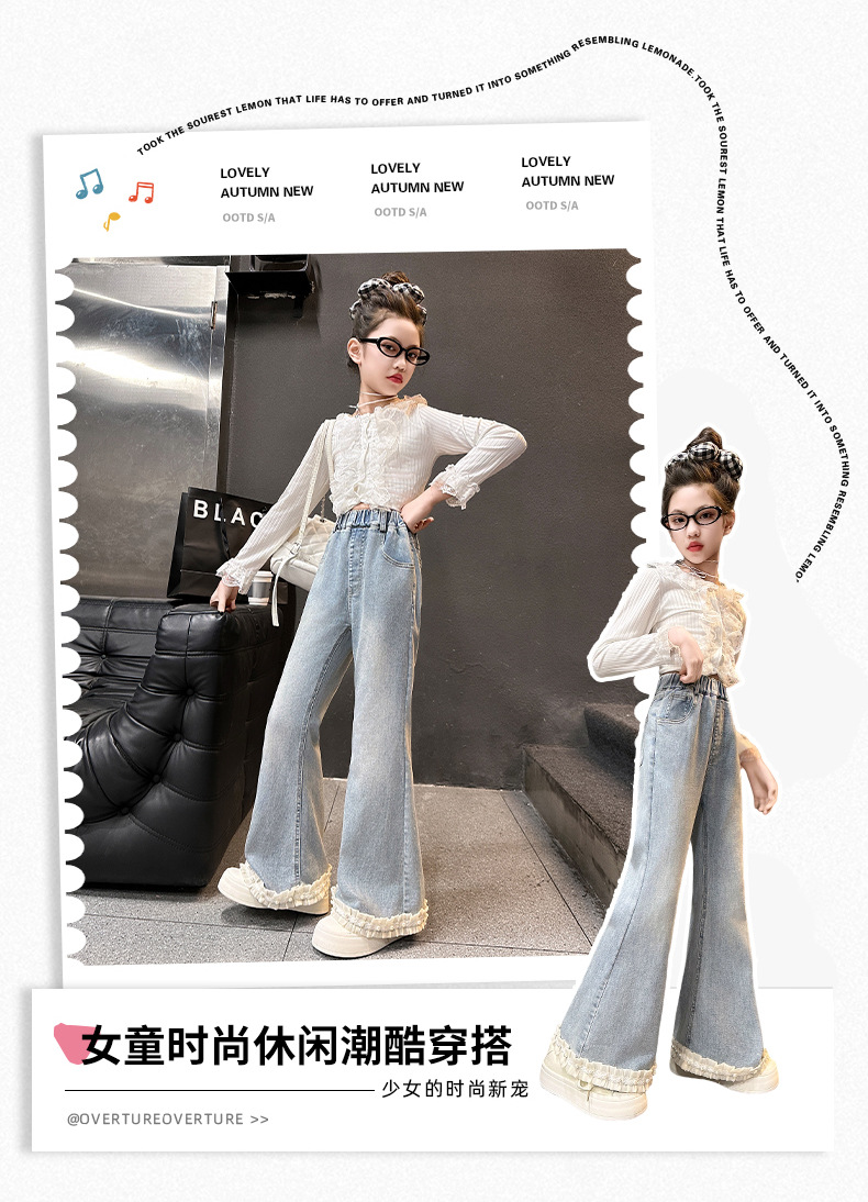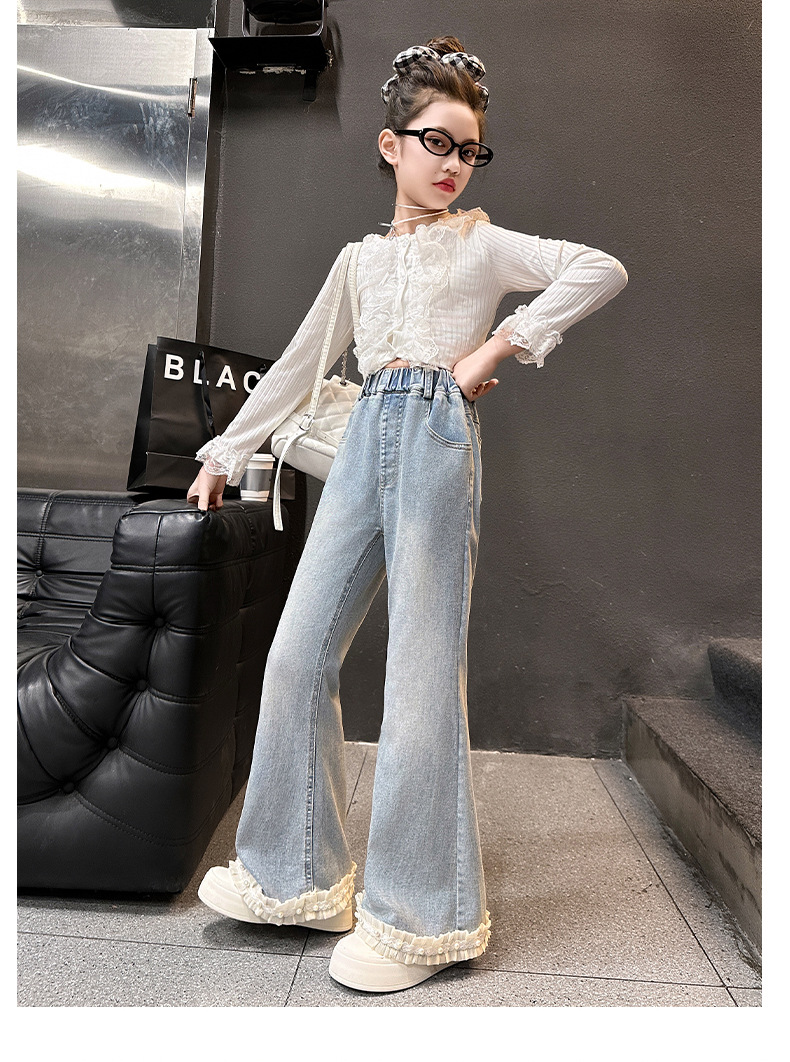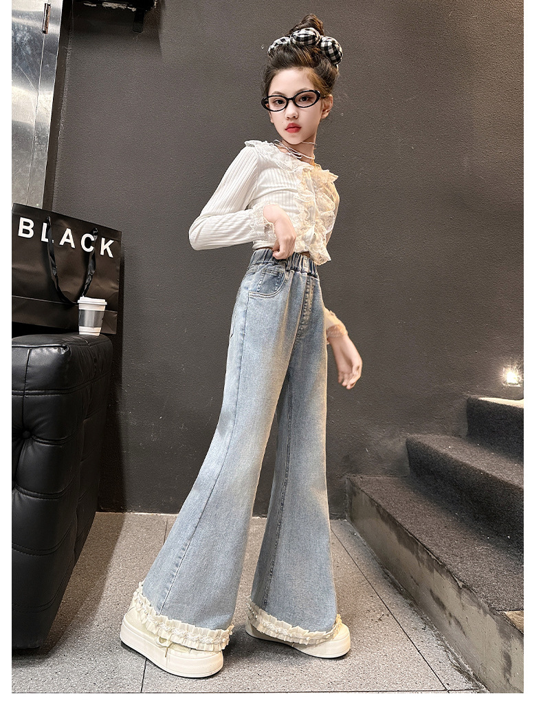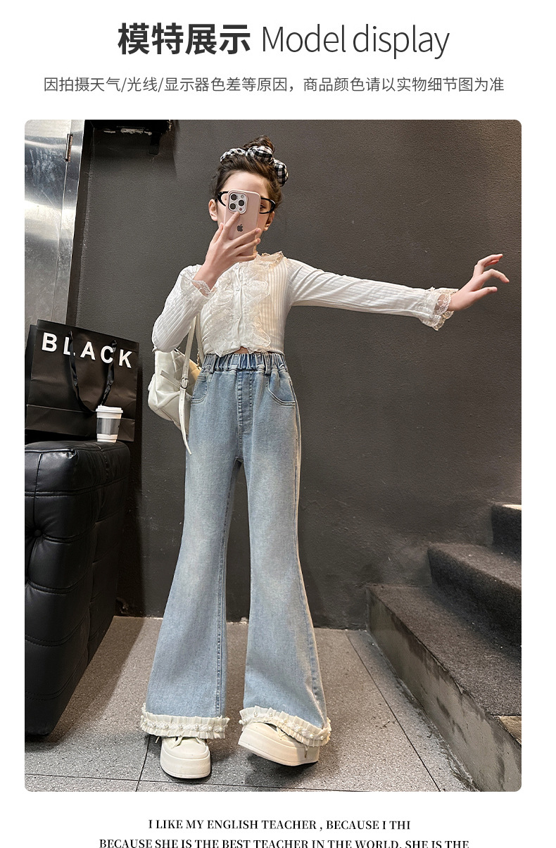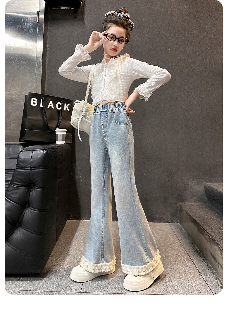 소녀 꽃 바지 봄과 가을 2025 새로운 서양식 어린이 봄 바지 큰 어린이 유행 술 청바지스토어 가기