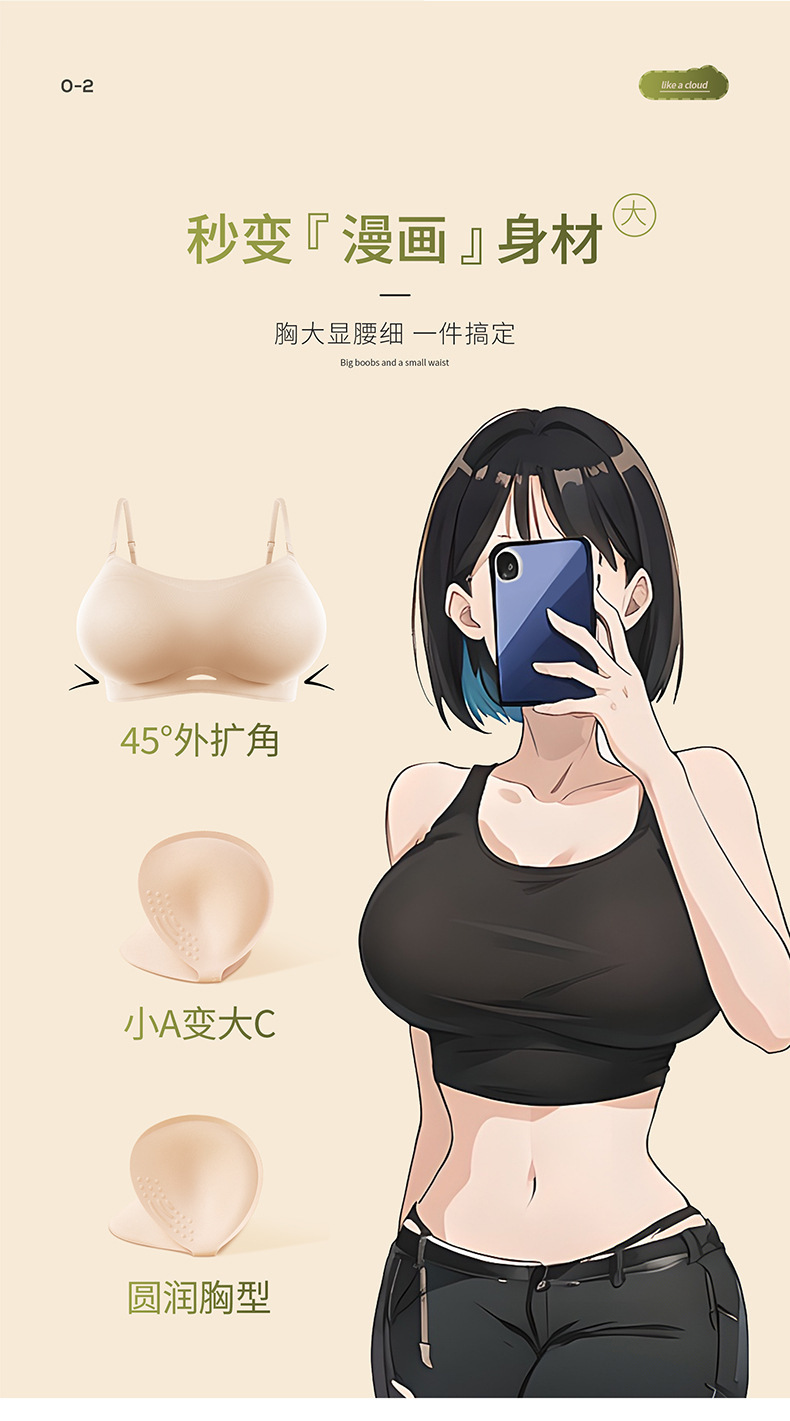 원래 압출 만화 가슴 tracless 속옷 여성의 작은 가슴 큰 결집과 함께 유방 끈이없는 미끄럼 방지 젤리 브라스토어 가기