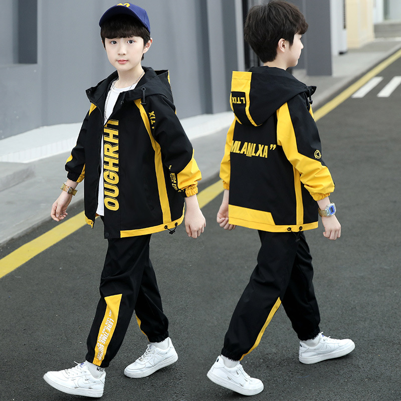남아 정장 봄가을복 2025 신상 큰아이 패셔너블하고 멋진 캐주얼 스웨트셔츠 투피스 세트 아동 수출복