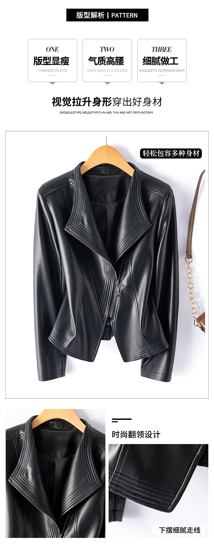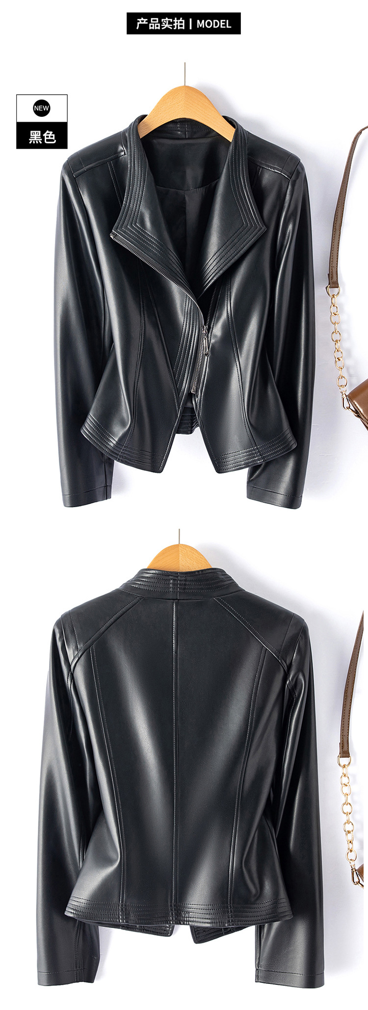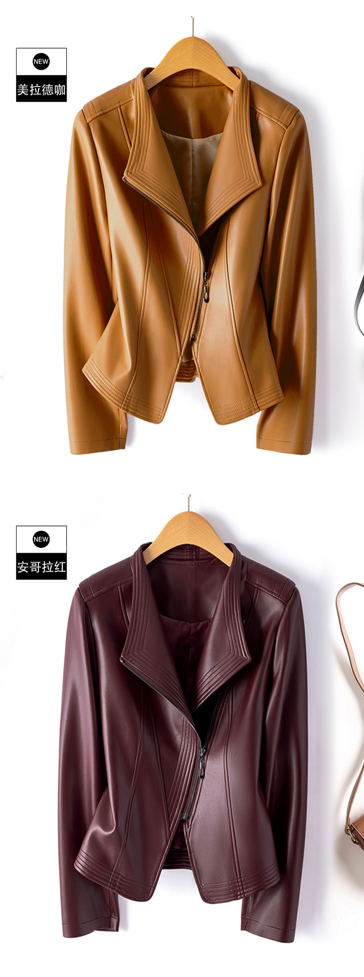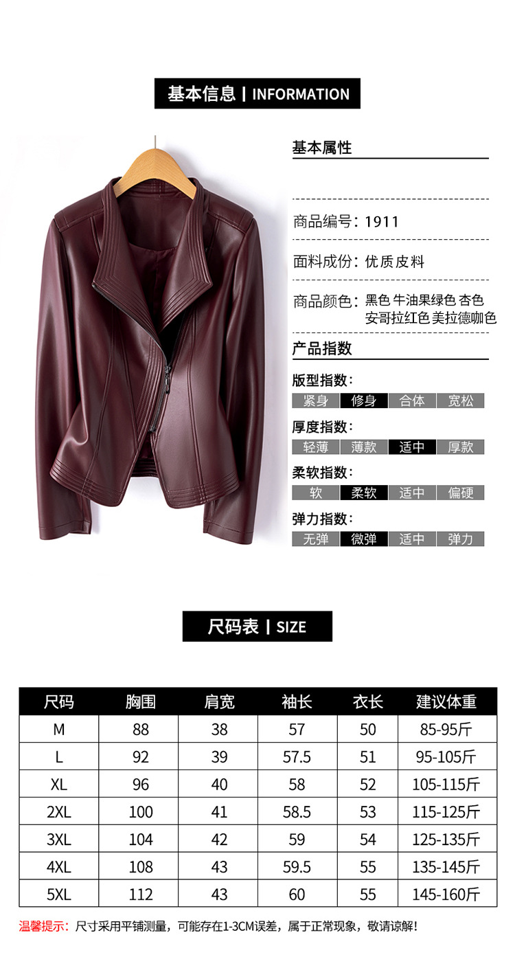 가죽 여성용 2025 바이커 여성용 가죽 자켓 플러스 사이즈 슬림 핏 슬리밍 가죽 재킷 옷깃 멀티 컬러 1911스토어 가기